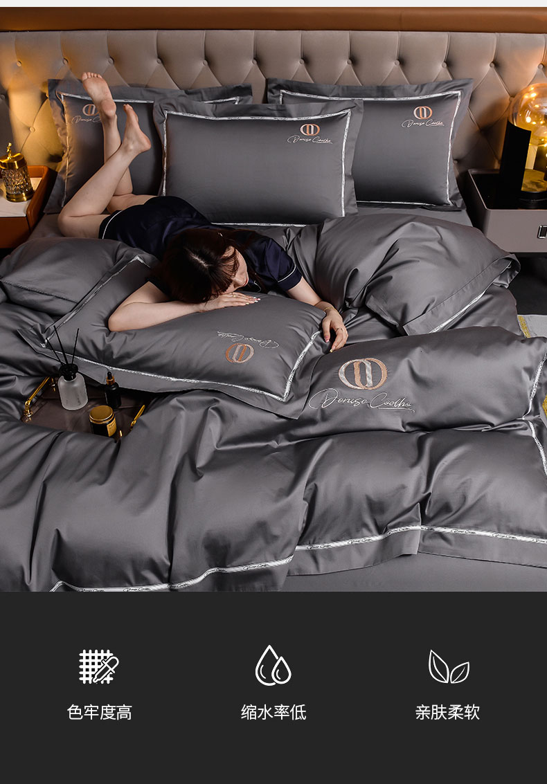 当前位置: 91家纺网 > 商品网购 > 床品套件 > 四件套 > 长绒棉四件套 > 瑞驰2024新款丹尼斯系列长绒棉绣花四件套 丹尼斯-高级灰