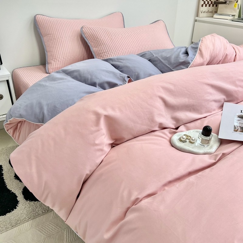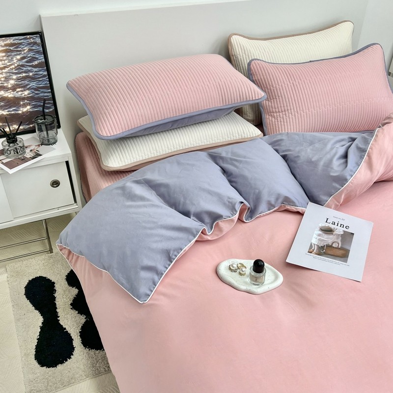 当前位置: 91家纺网 > 商品网购 > 床品套件 > 三件套 > 茉夕 2023新款双面纯棉高温砂洗纯色撞色三件套系列 粉+紫