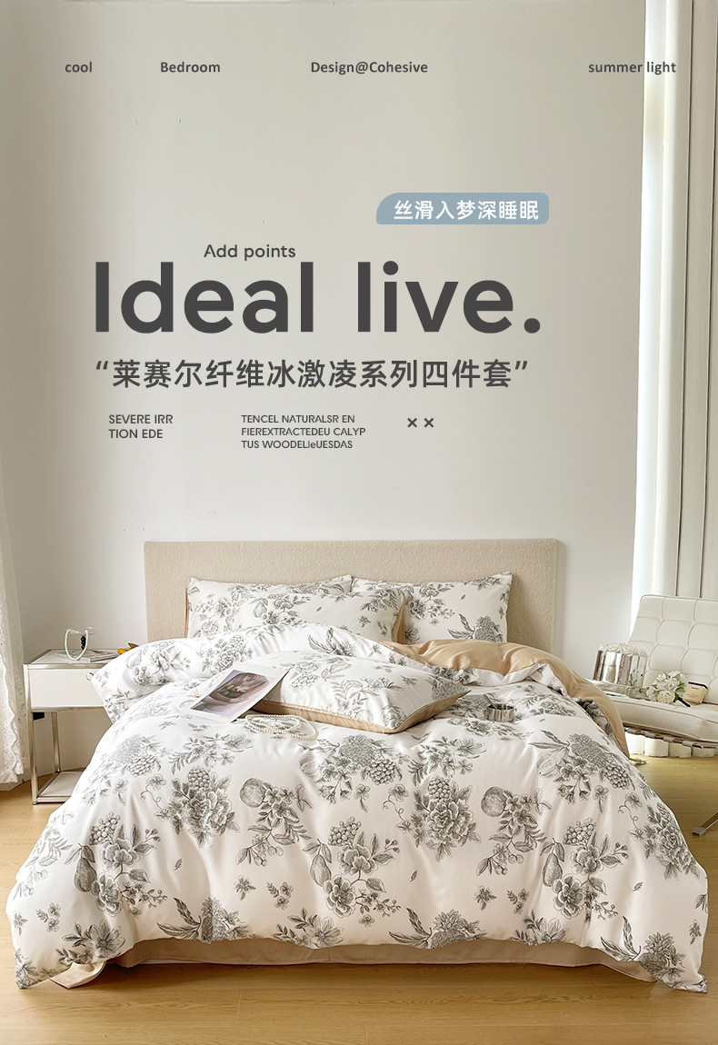 商品名称:千朵 2023新款莱赛尔纤维冰激凌系列四件套(三) 恋馨