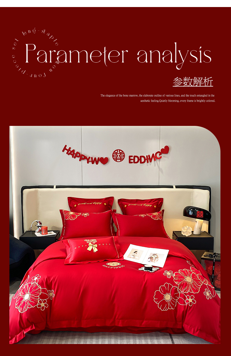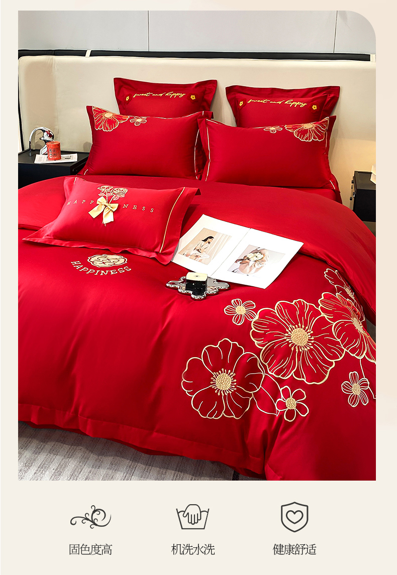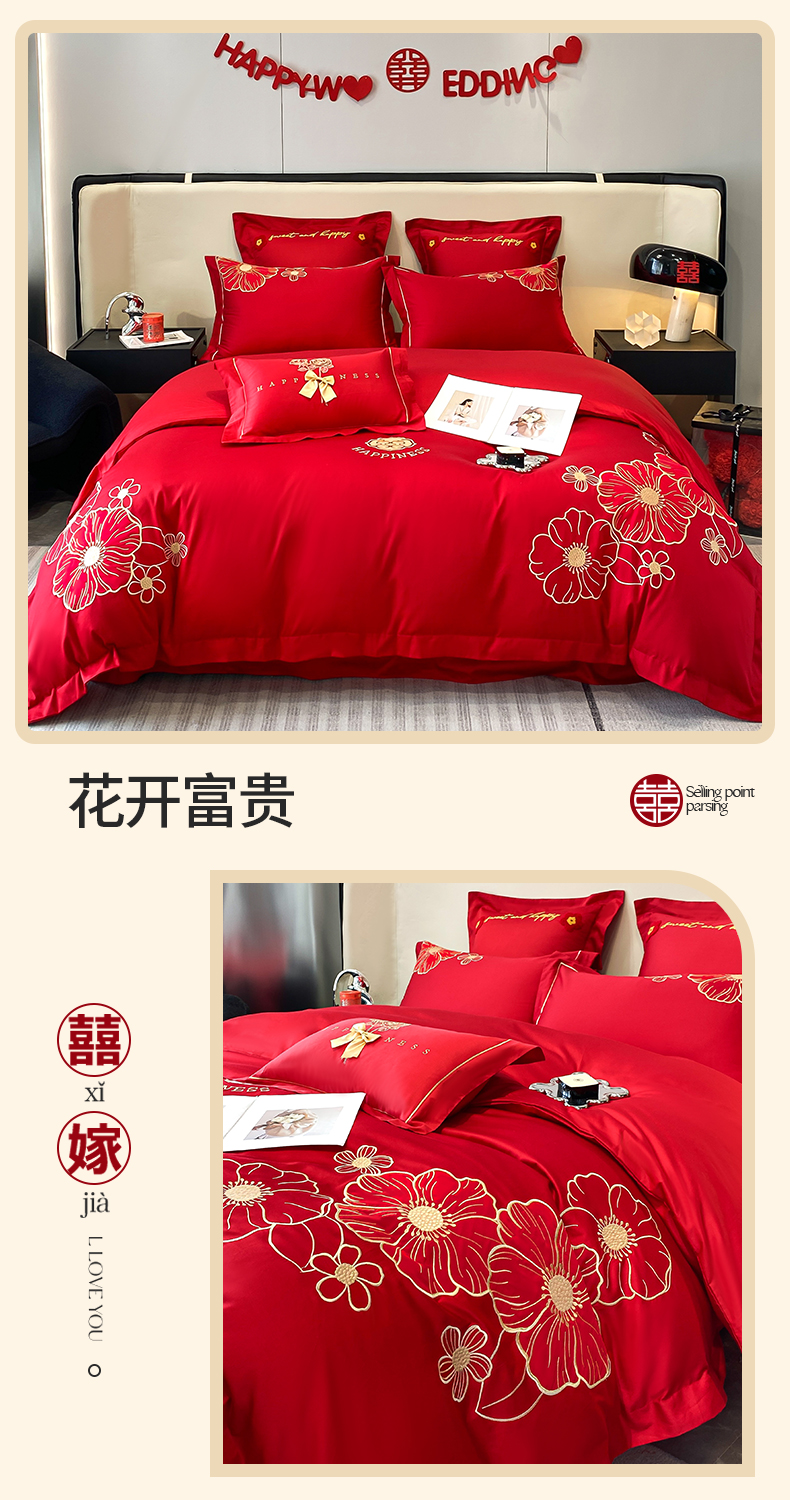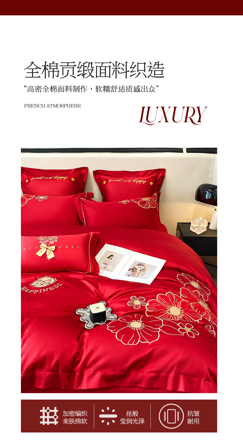 商品名称:798家纺 2023新款60支全棉贡缎绣花婚庆四件套 花开富贵