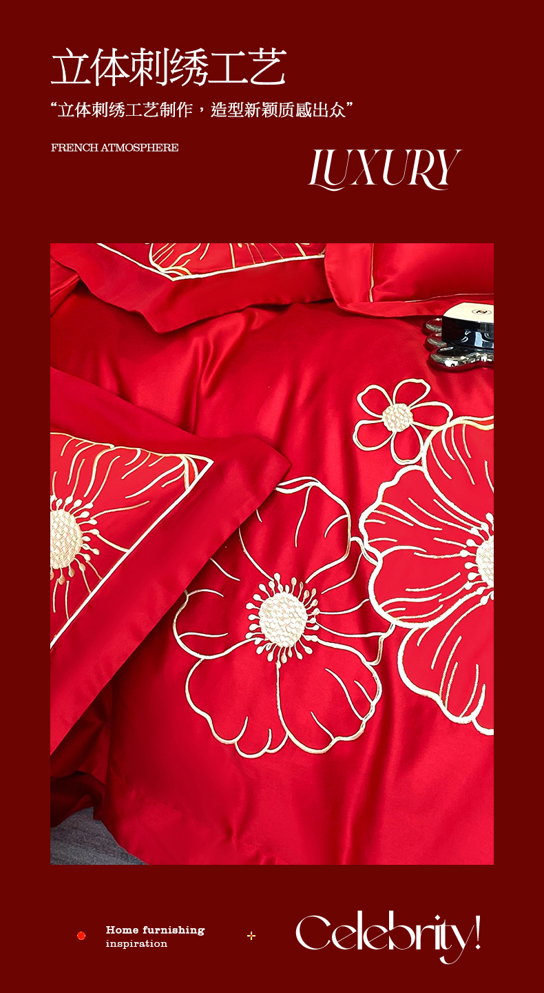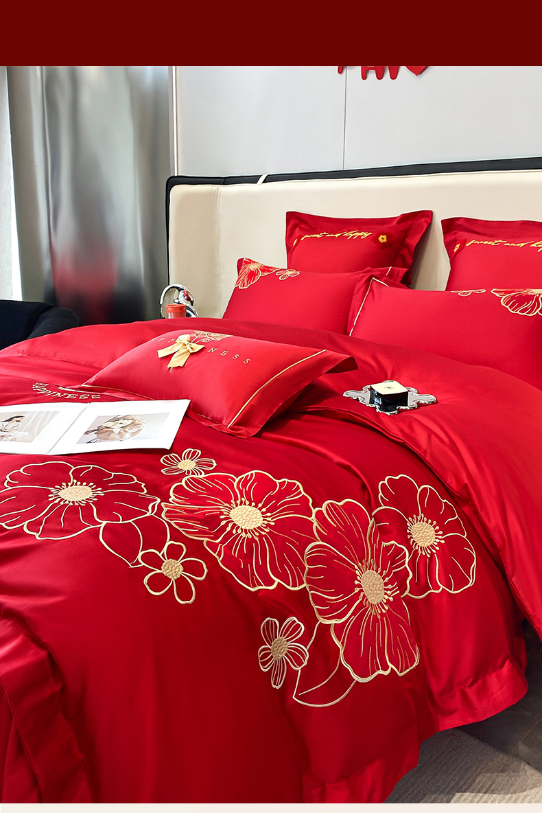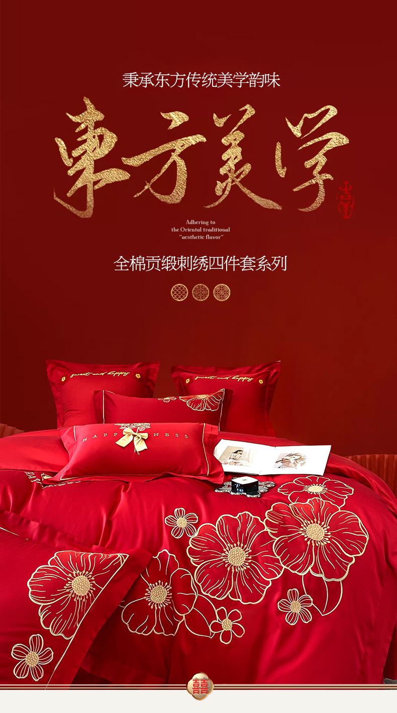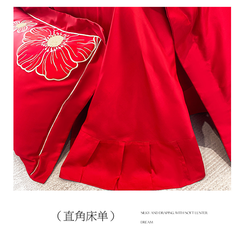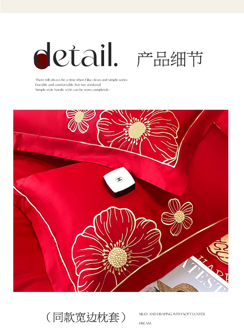 商品名称:798家纺 2023新款60支全棉贡缎绣花婚庆四件套 花开富贵