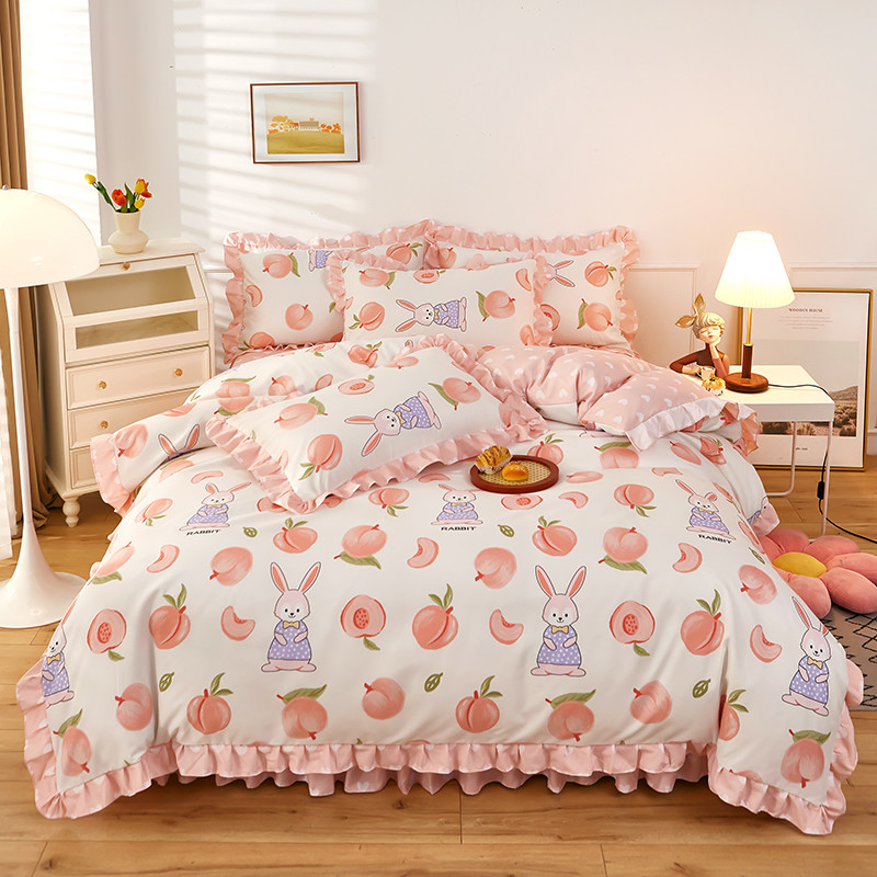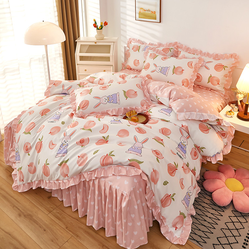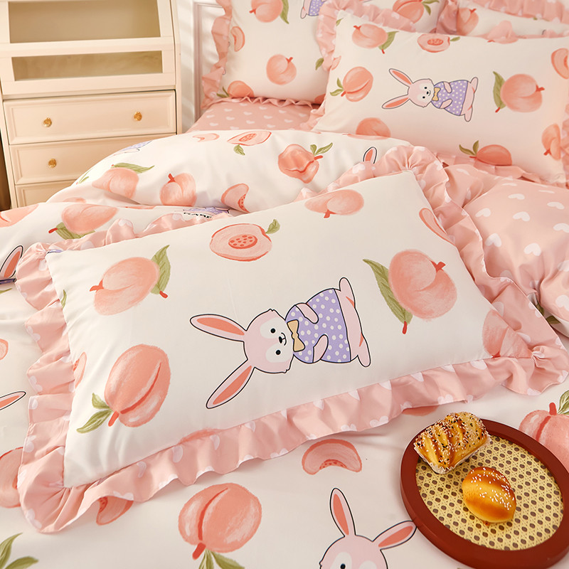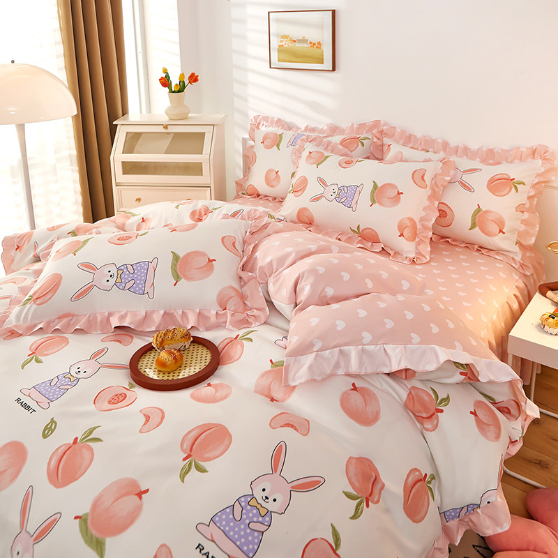 当前位置: 91家纺网 > 商品网购 > 床品套件 > 四件套 > 普通磨毛四件套 > 艾橙家纺 2023新款小清新韩版磨毛花边四件套 蜜桃兔
