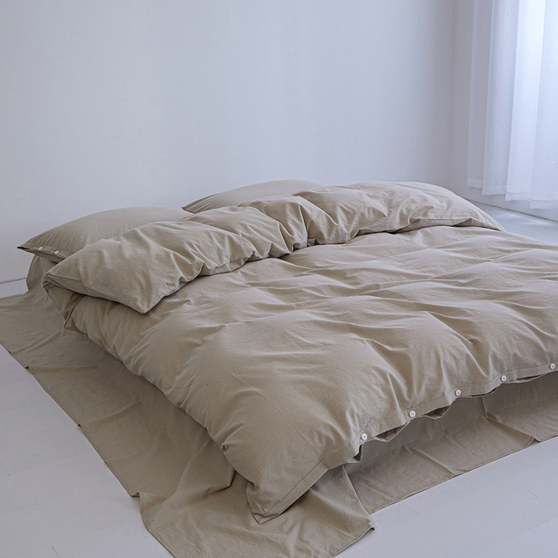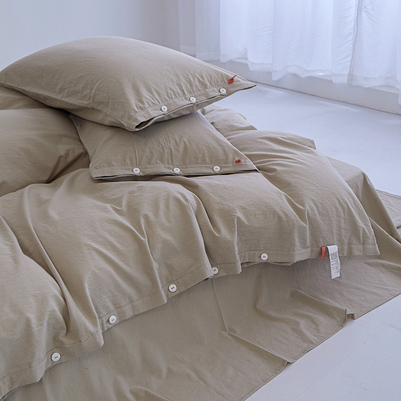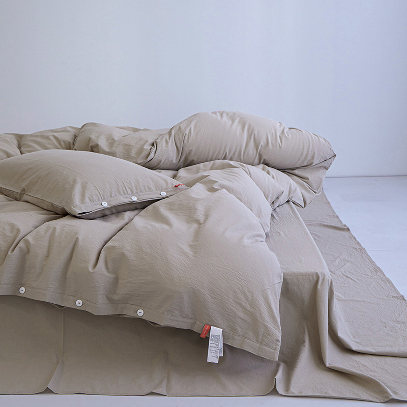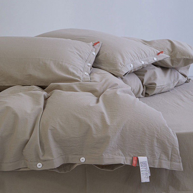 当前位置: 91家纺网 > 商品网购 > 床品套件 > 四件套 > 全棉普通四件套 > 安莱生活 2023年水洗棉全棉色经色纬高支高密纽扣款工艺四件套 卡其