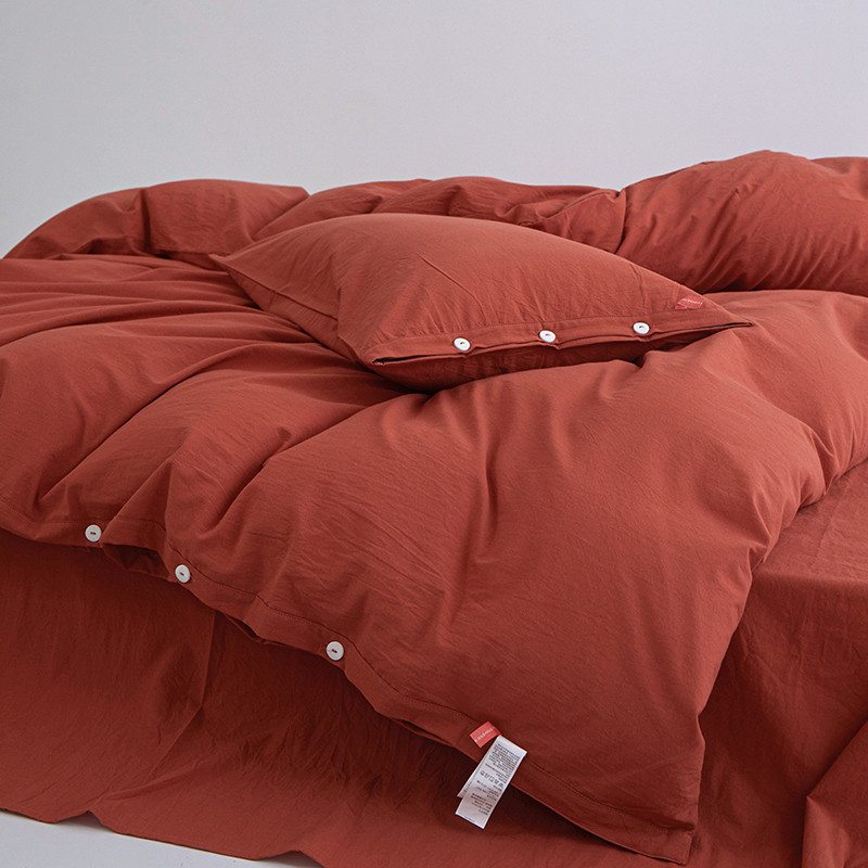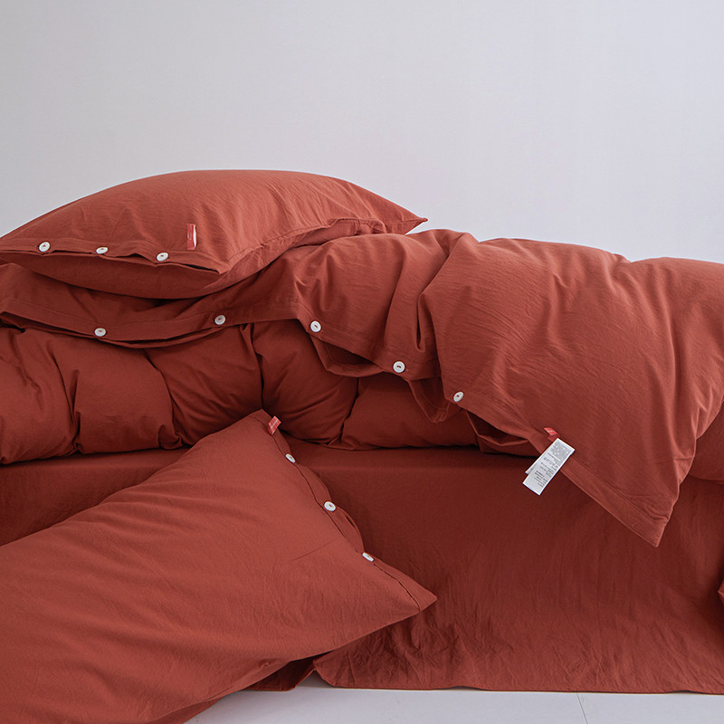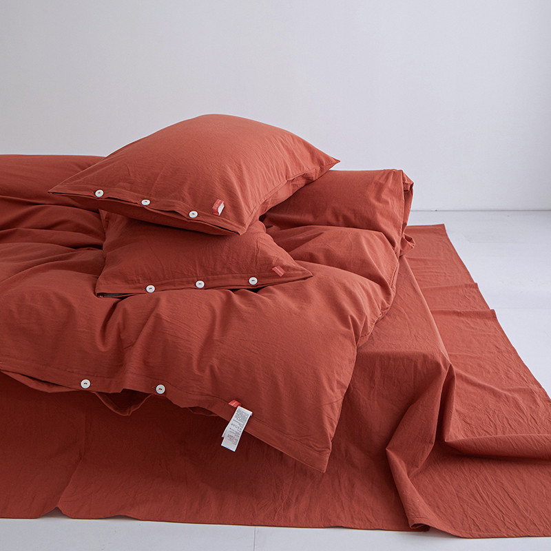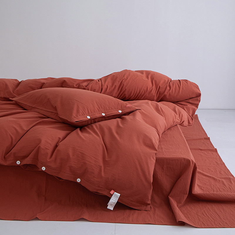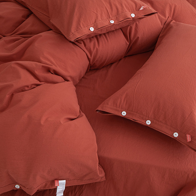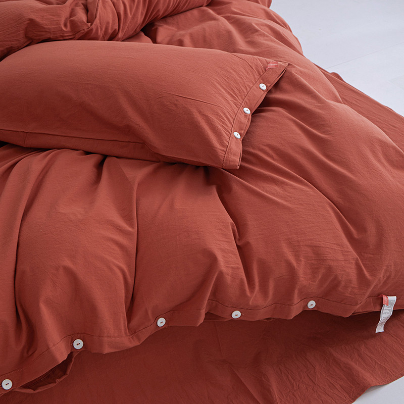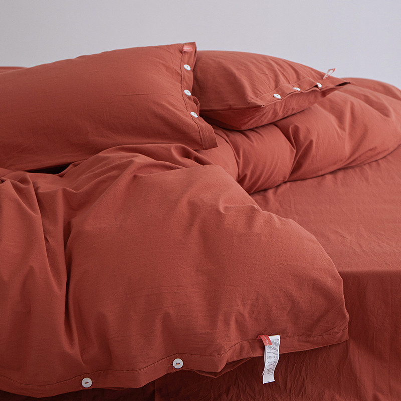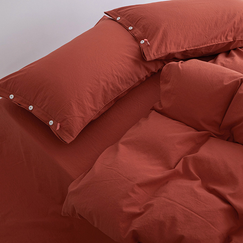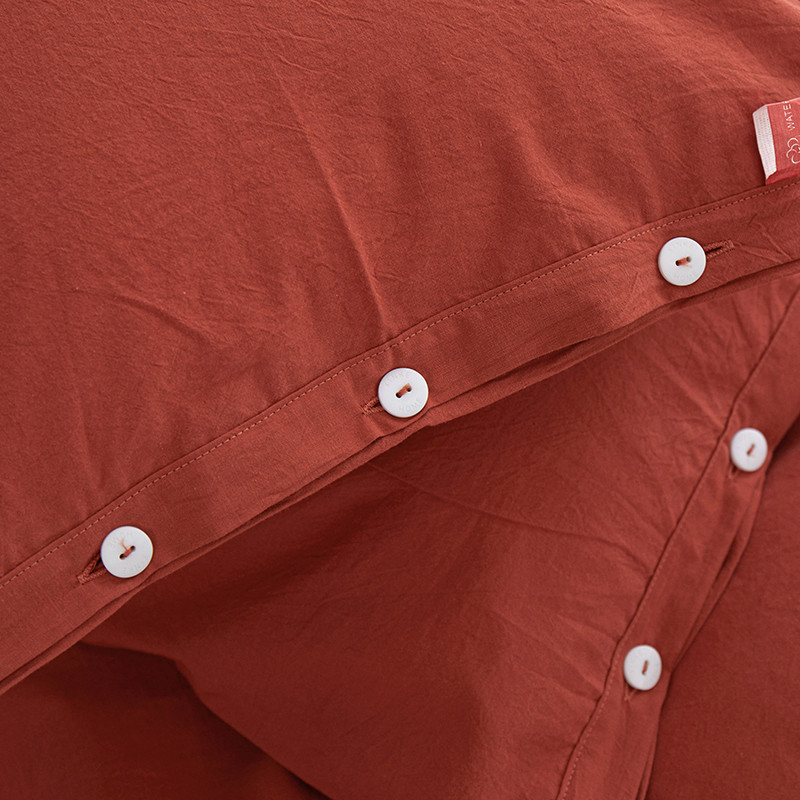 当前位置: 91家纺网 > 商品网购 > 床品套件 > 四件套 > 全棉普通四件套 > 安莱生活 2023年水洗棉全棉色经色纬高支高密纽扣款工艺四件套 砖红