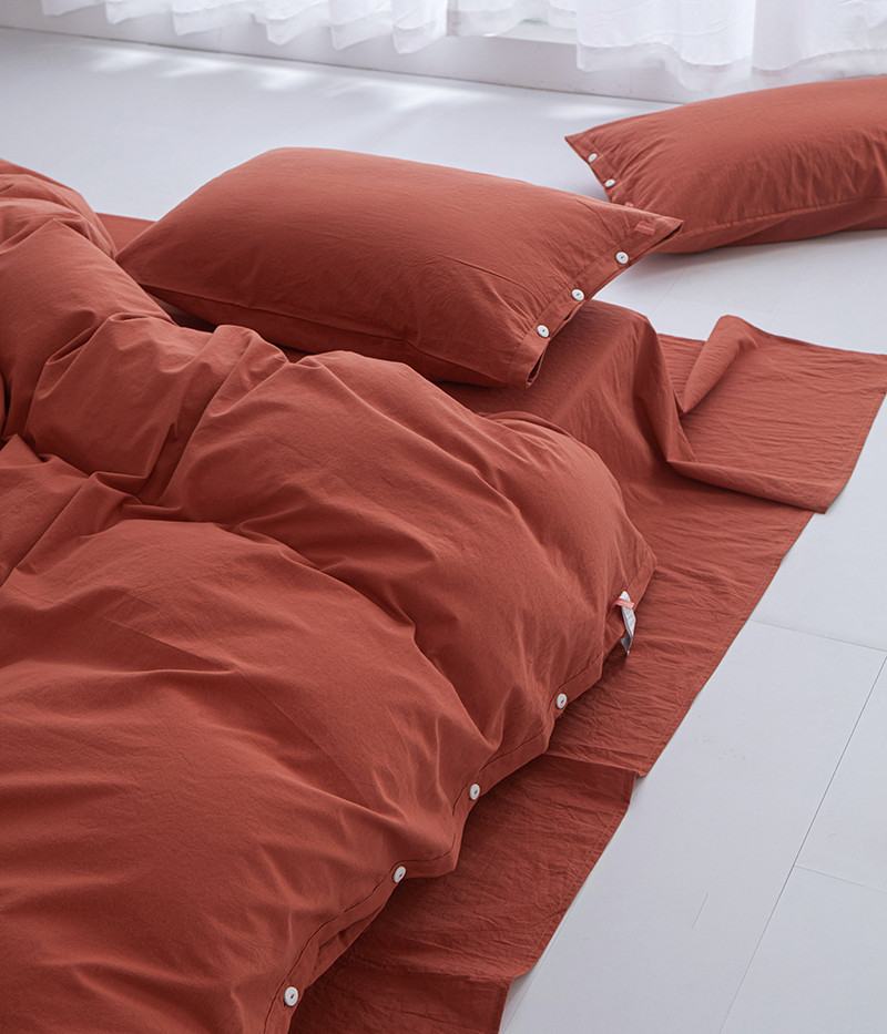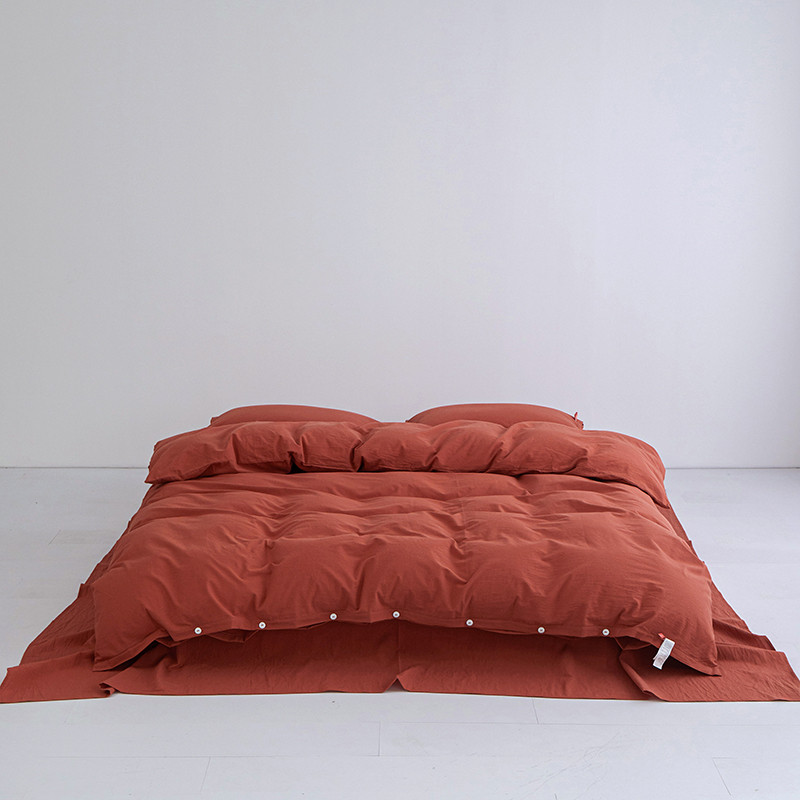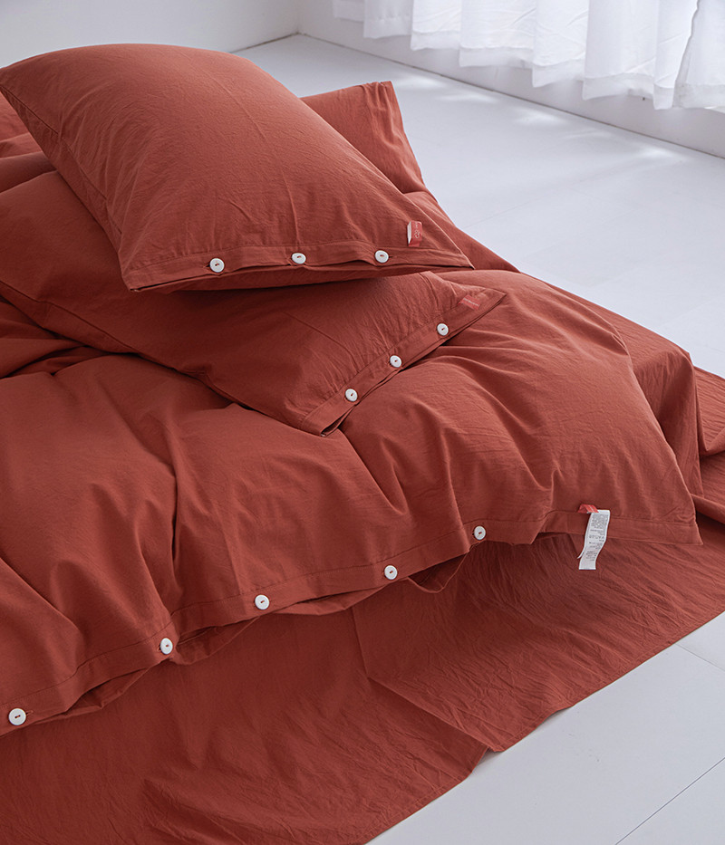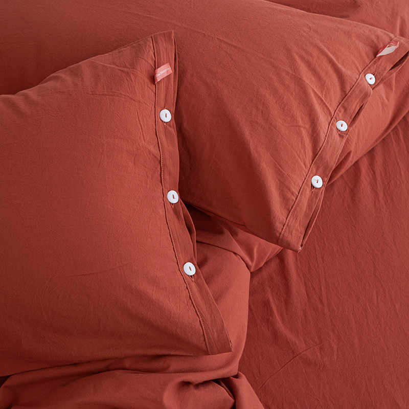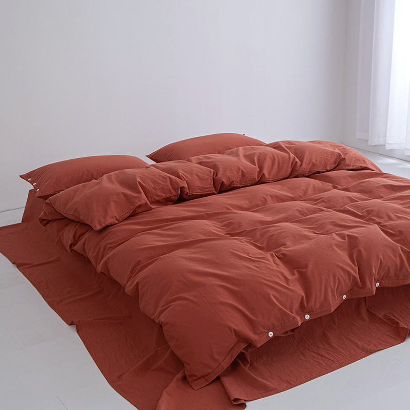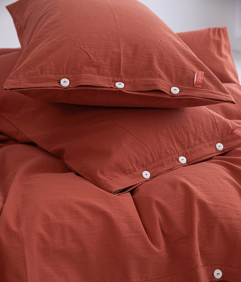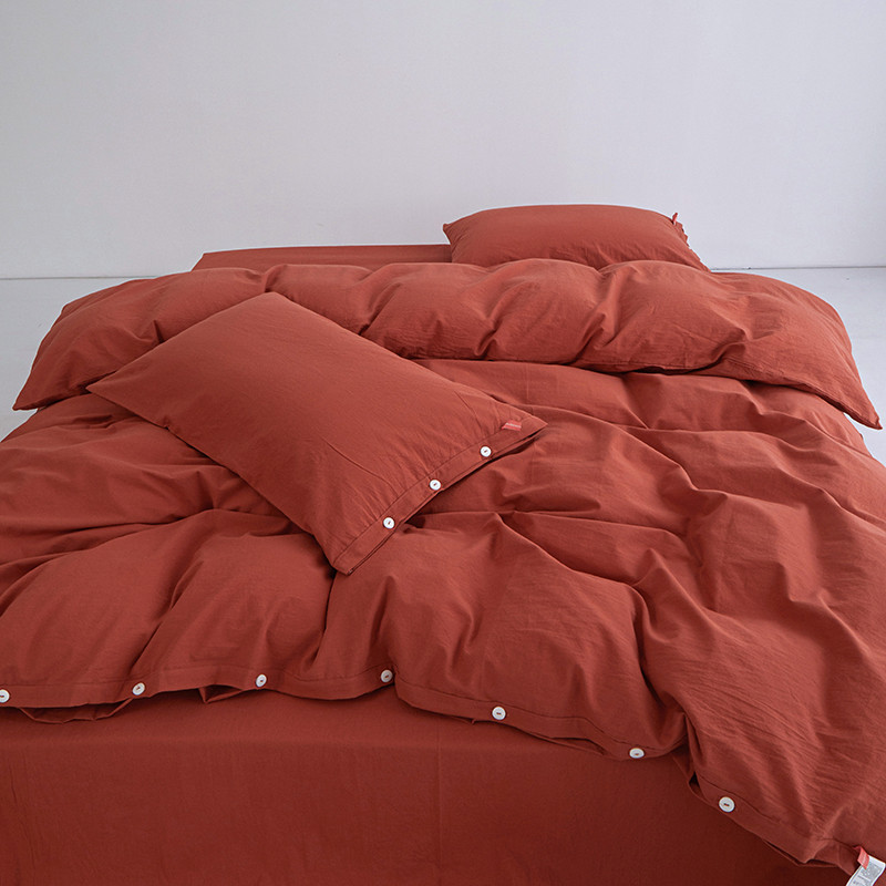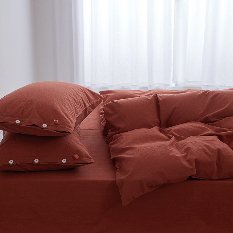 当前位置: 91家纺网 > 商品网购 > 床品套件 > 四件套 > 全棉普通四件套 > 安莱生活 2023年水洗棉全棉色经色纬高支高密纽扣款工艺四件套 砖红
