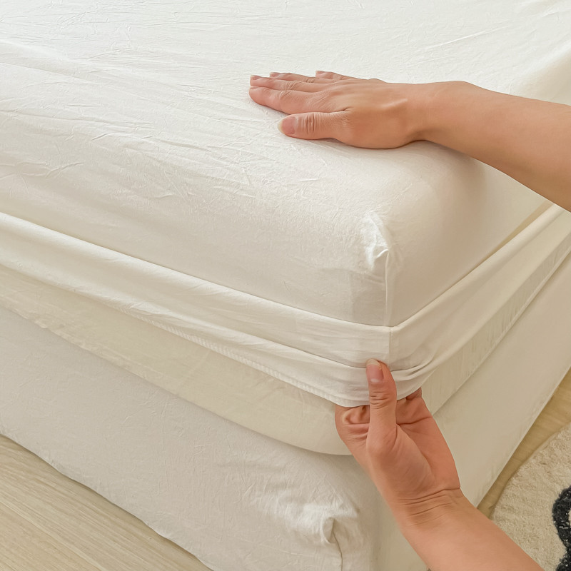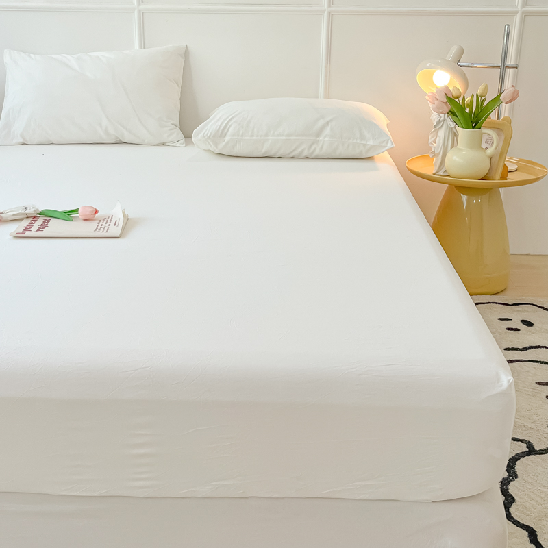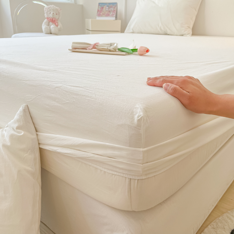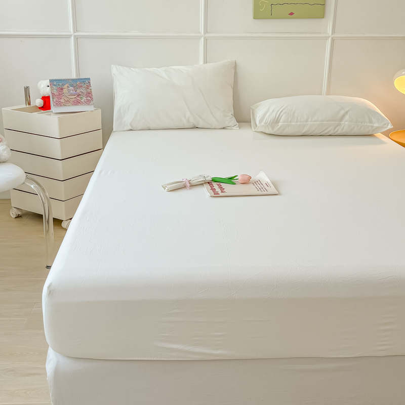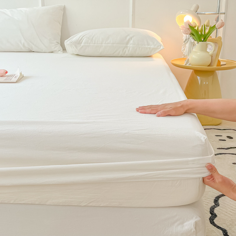 盼季 2023新款水洗棉床笠三件套防滑床罩席梦思全包围保护套 奶白