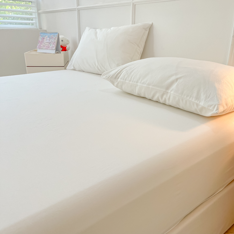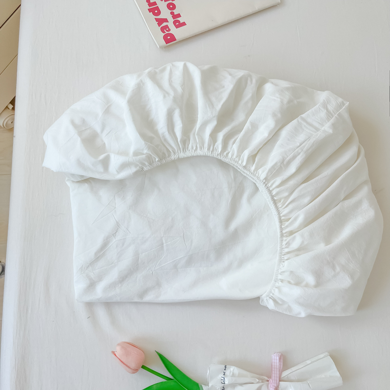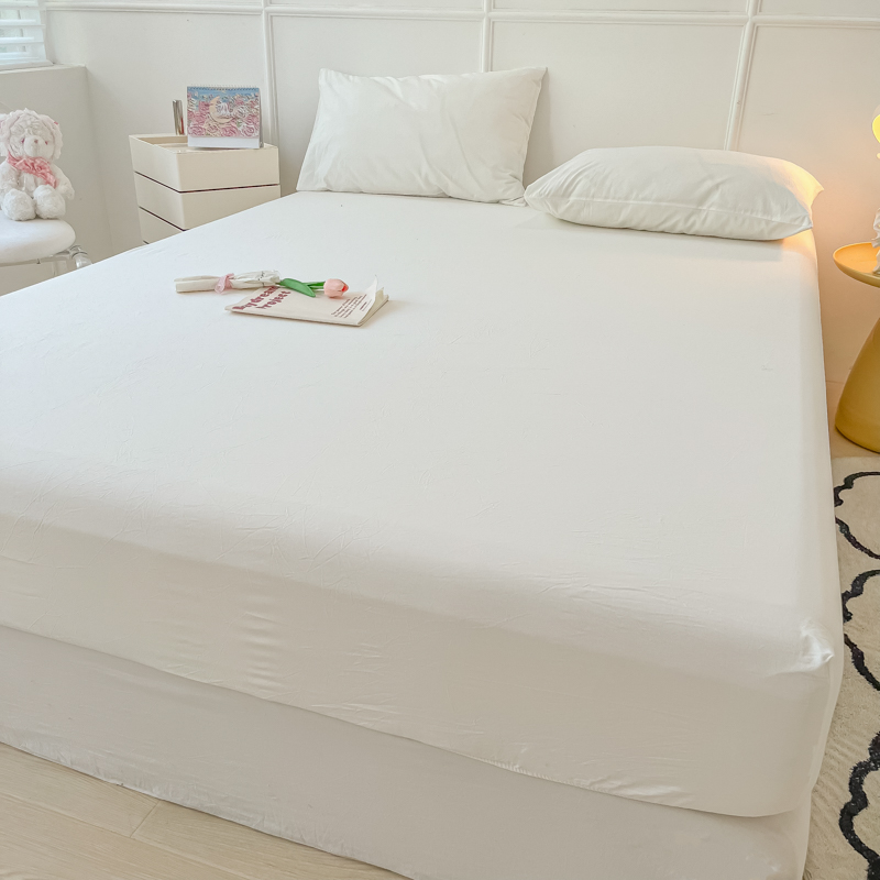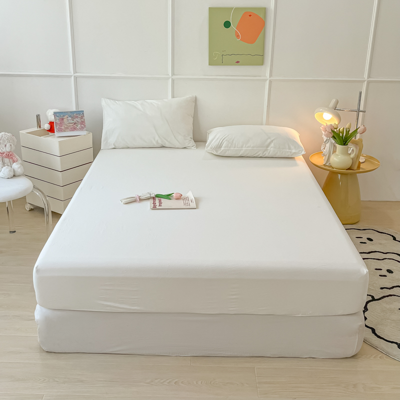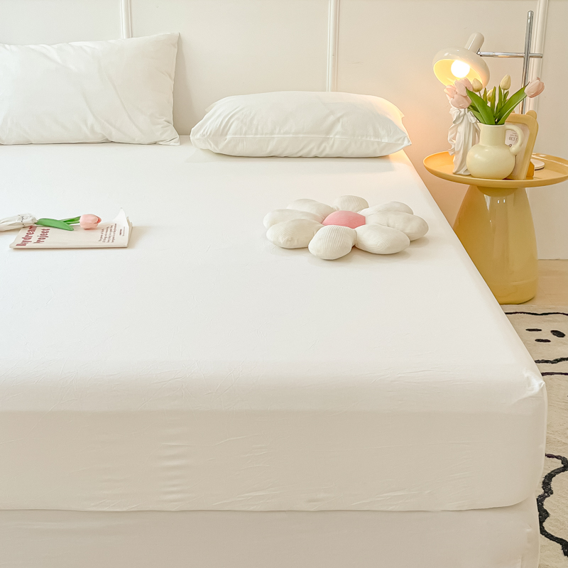盼季 2023新款水洗棉床笠三件套防滑床罩席梦思全包围保护套 奶白