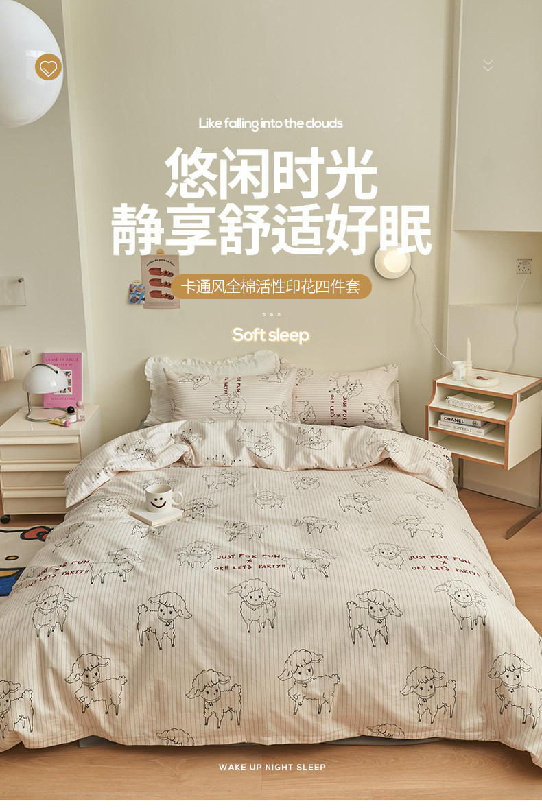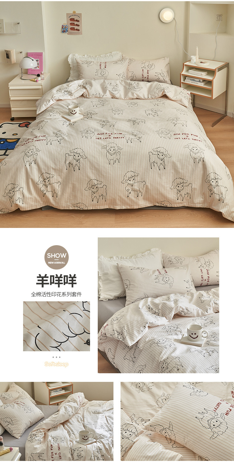 当前位置: 91家纺网 > 商品网购 > 床品套件 > 四件套 > 全棉普通四件套 > 窝米 2023新款13370全棉卡通风系列四件套 羊咩咩
