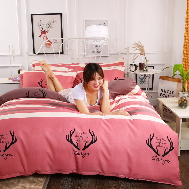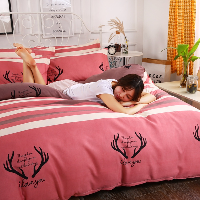 鑫缘2025直播爆款印花植物羊绒加厚磨毛四件套1.2米学生三件套 真爱永恒,真爱永恒