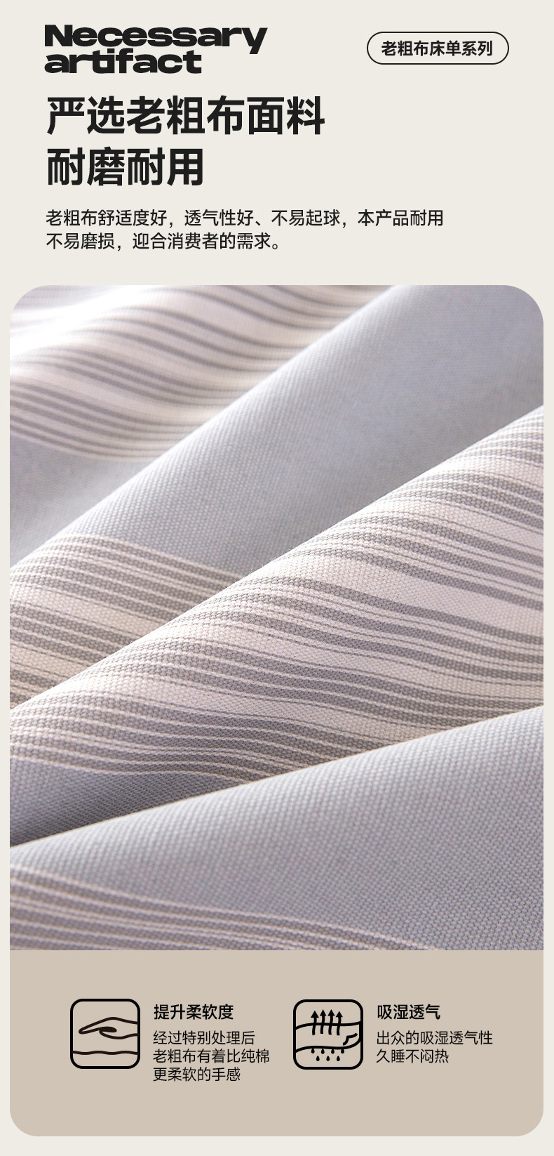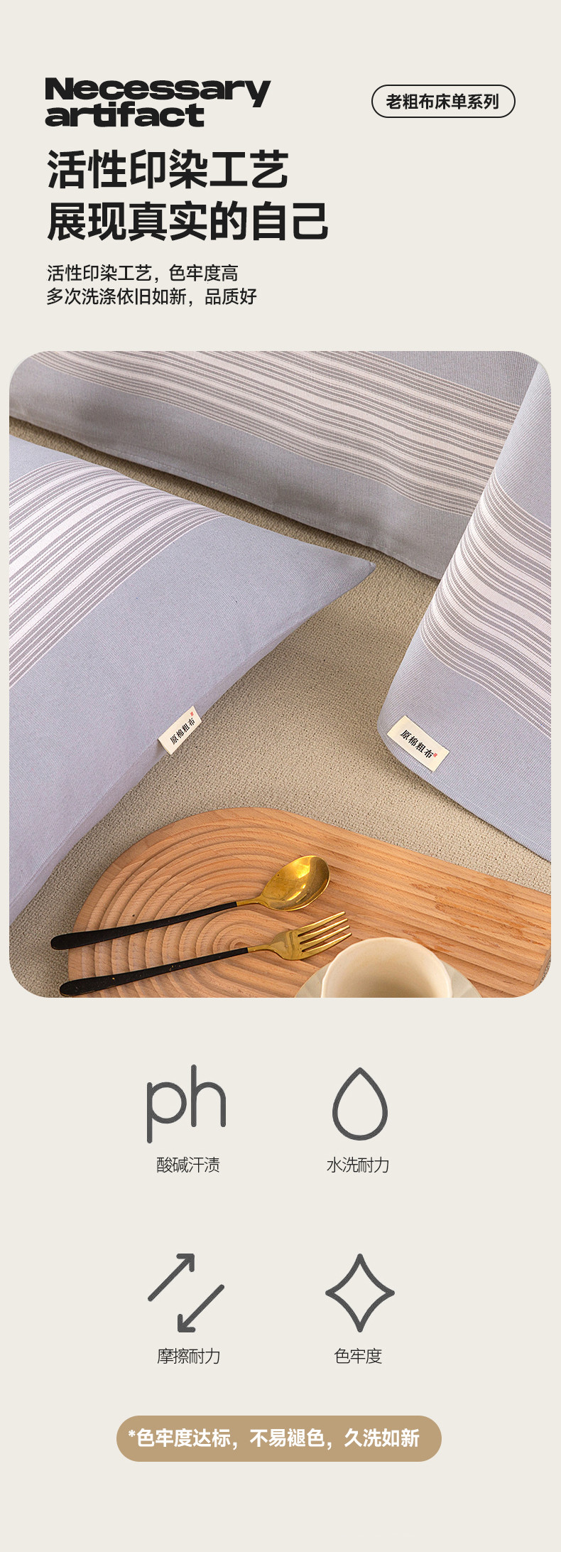 商品名称:棉乐町家居 2025新款原棉老粗布系列单床单 淡雅