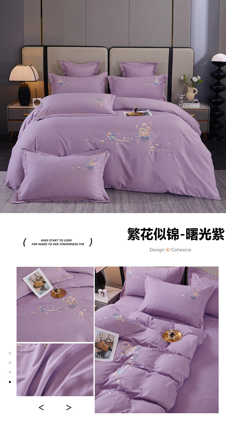 商品名称:馨雅家纺 2025新款全棉绣花四件套系列 繁花似锦-曙光紫