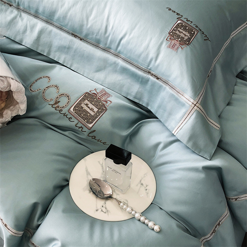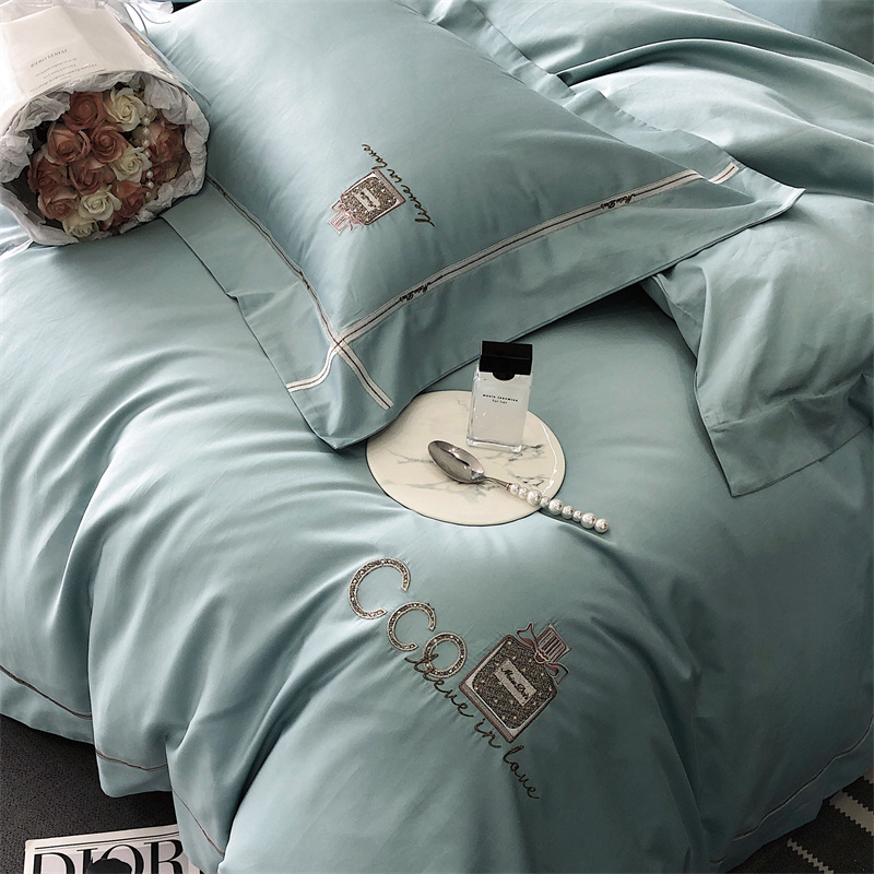 (总)玖玖爱家纺 2023新款120支贡缎长绒棉刺绣梦柔系列四件套,梦柔-香槟金,梦柔-香橙桔,梦柔-高级灰,梦柔-水蓝,梦柔-芙蓉玉