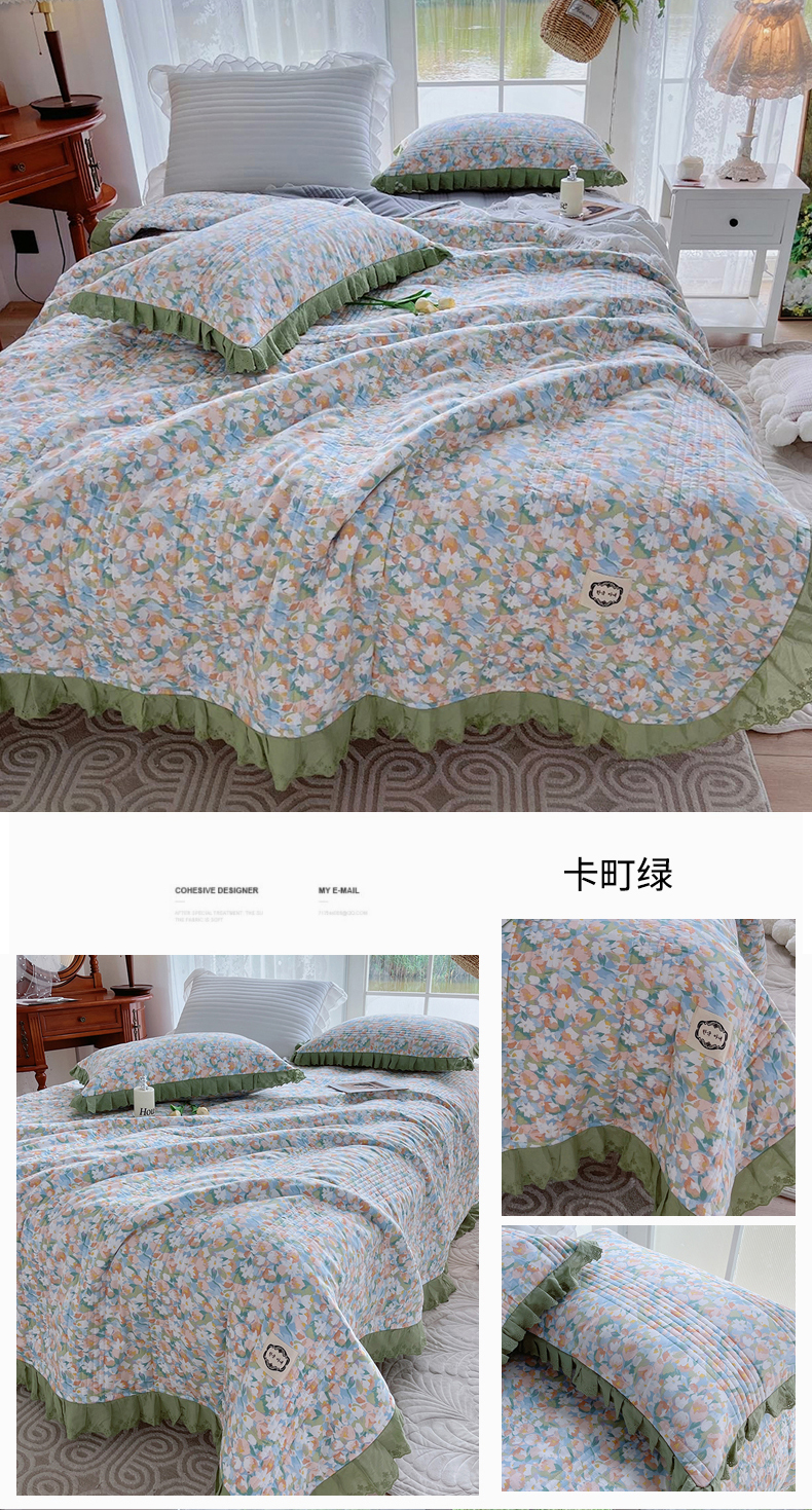 商品名称:菊上家纺 2023秋冬新品法式花边全棉单床盖 卡町绿