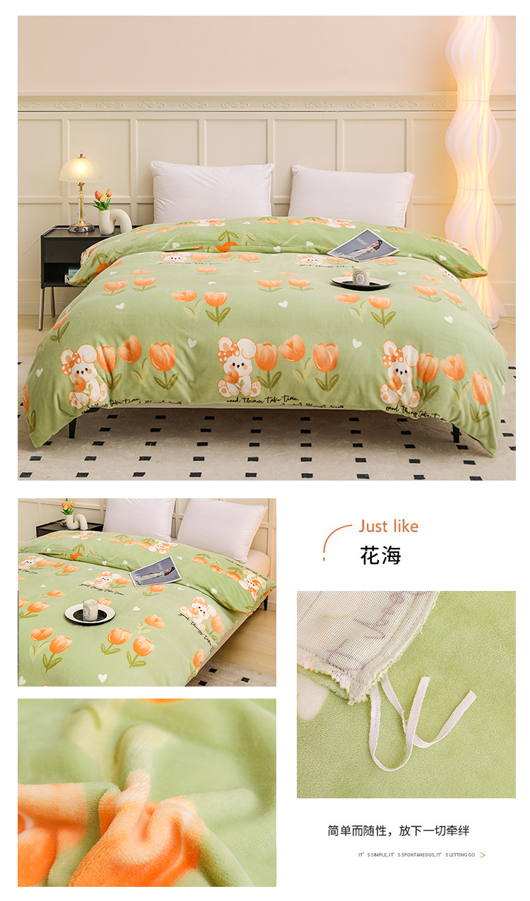 • 91家纺网 家纺一手货源 找家纺 新款230克高克重印花牛奶绒单被套定制定做尺寸 花海