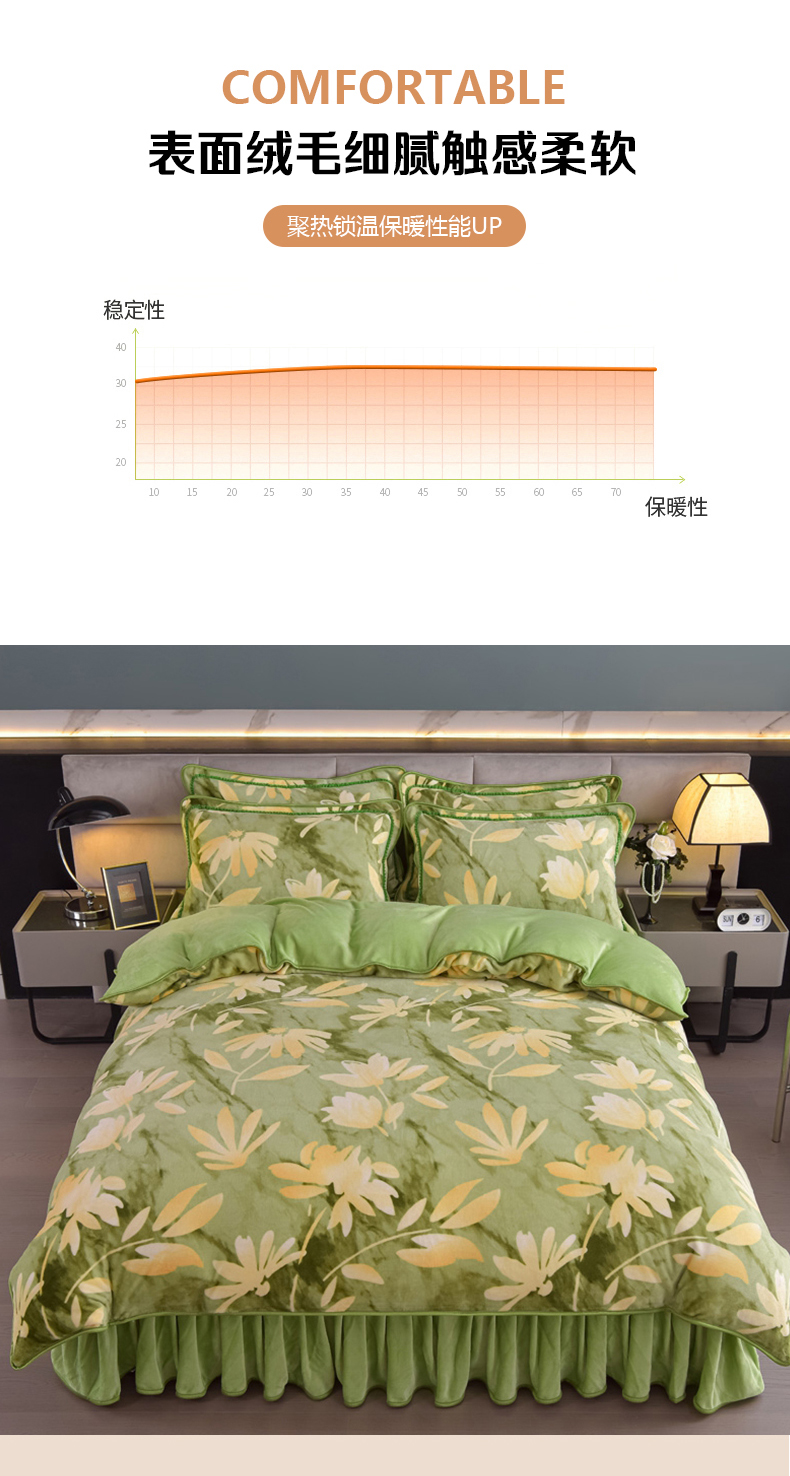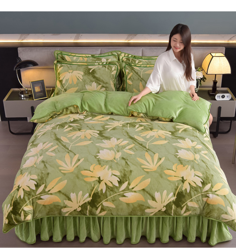 锦铭源2025年7斤加厚印花牛奶绒四件套水晶法莱金貂绒床裙款 清雅