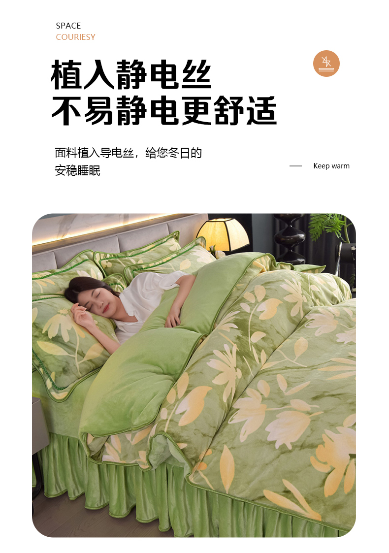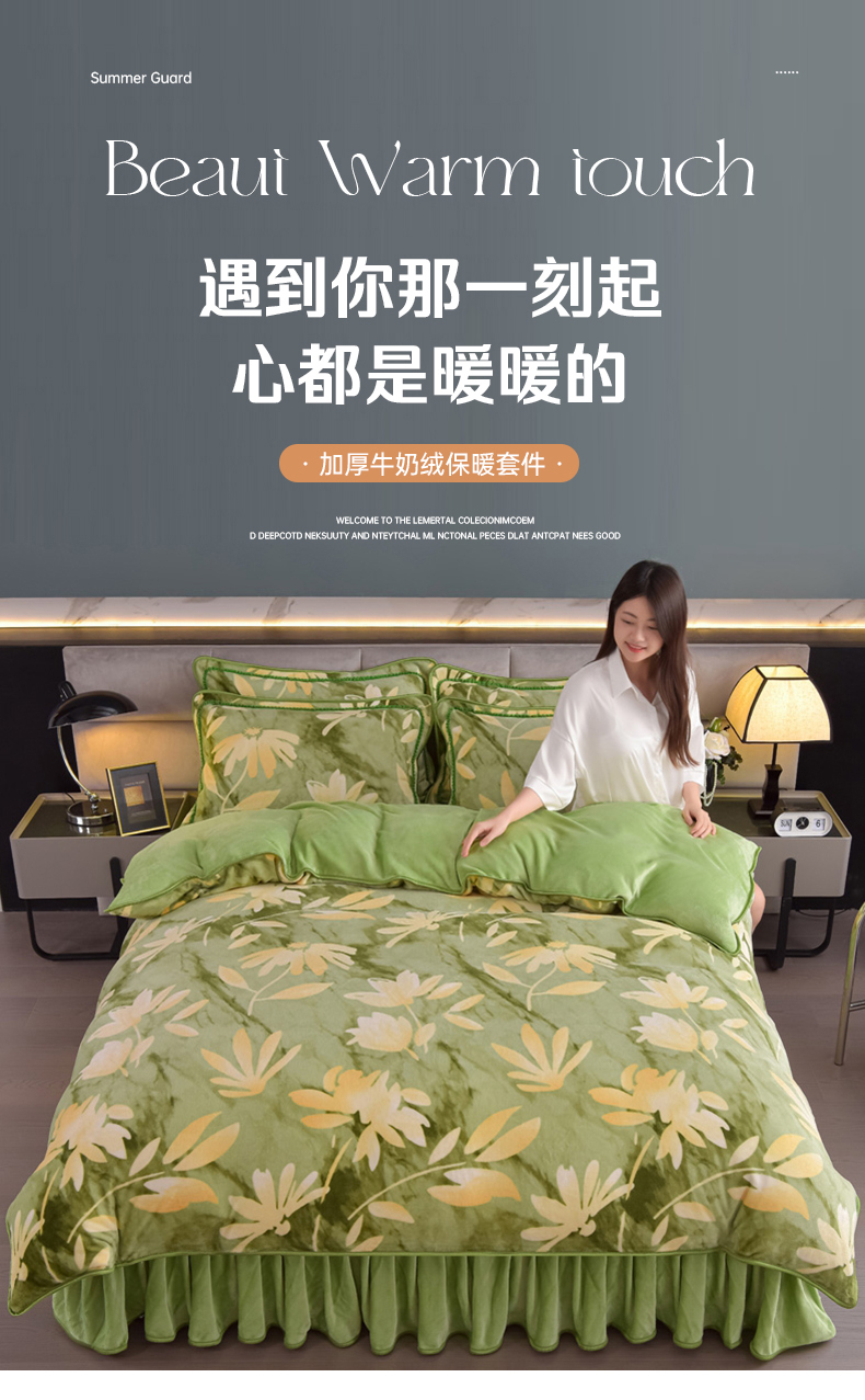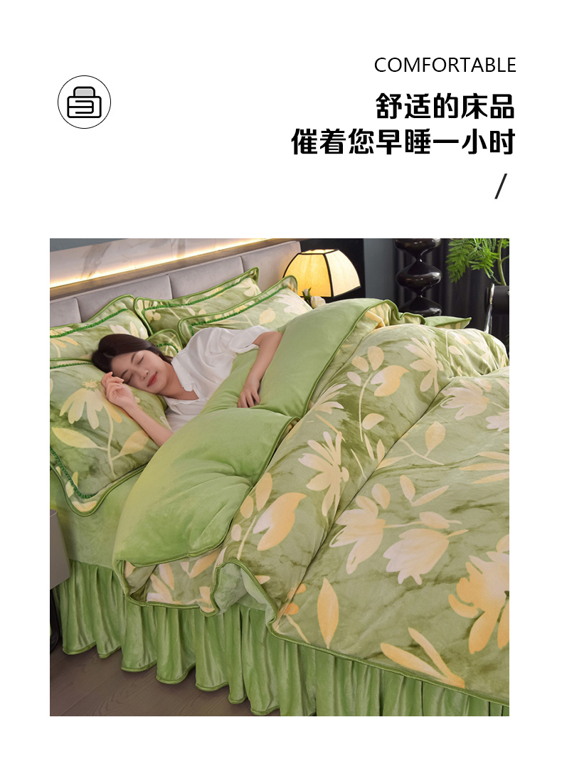 锦铭源2025直播印花7斤牛奶绒金貂水晶法莱珊瑚绒四件套床裙款花恋,花恋