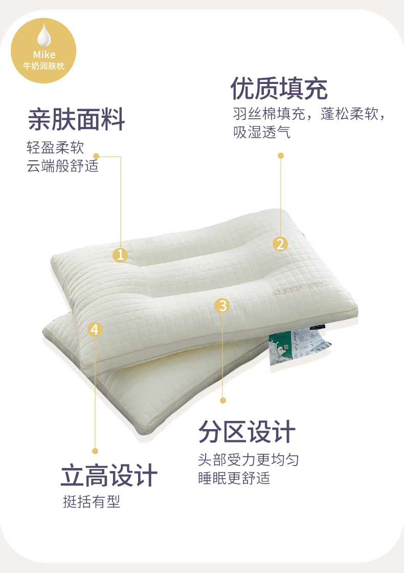 商品名称:(总)2023新款牛奶护肤养颜护颈枕 亲肤牛奶立体枕低枕羽丝绒枕头枕芯