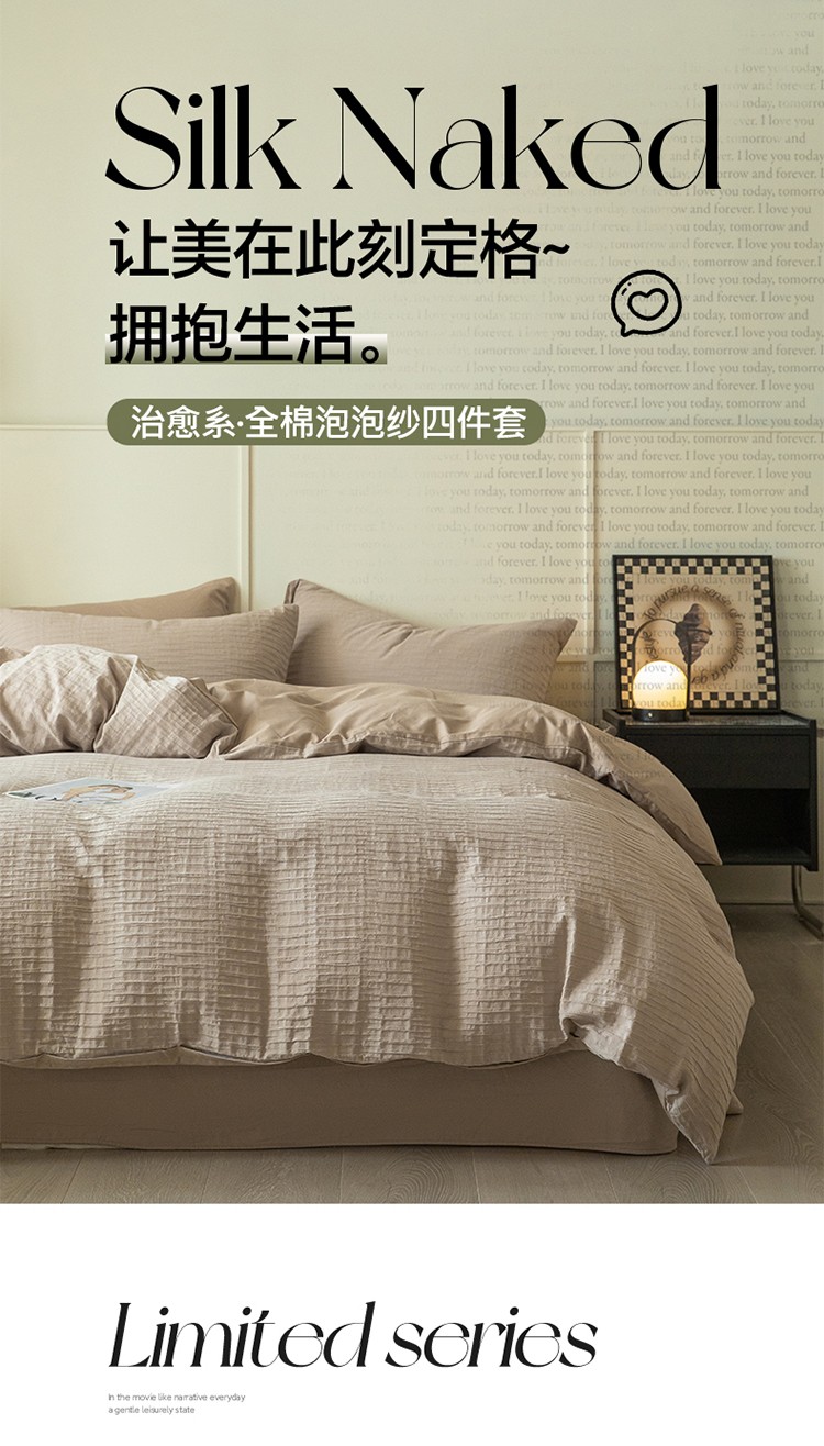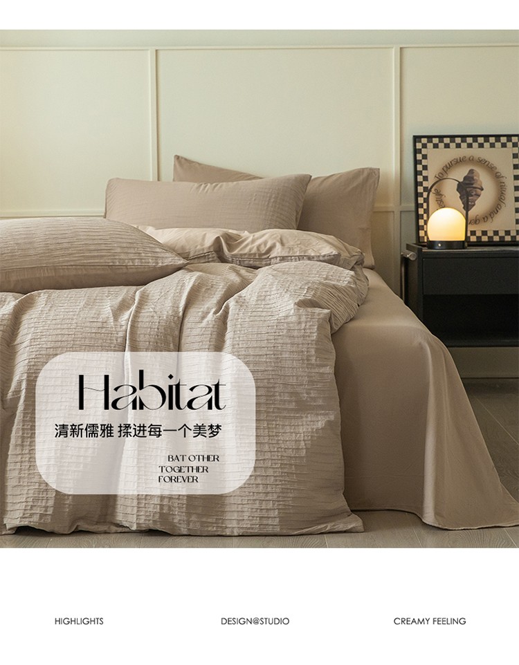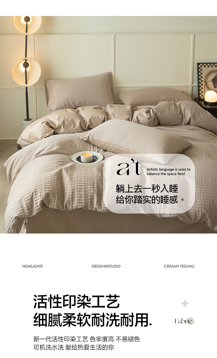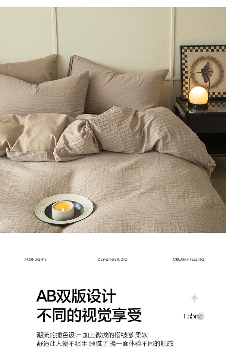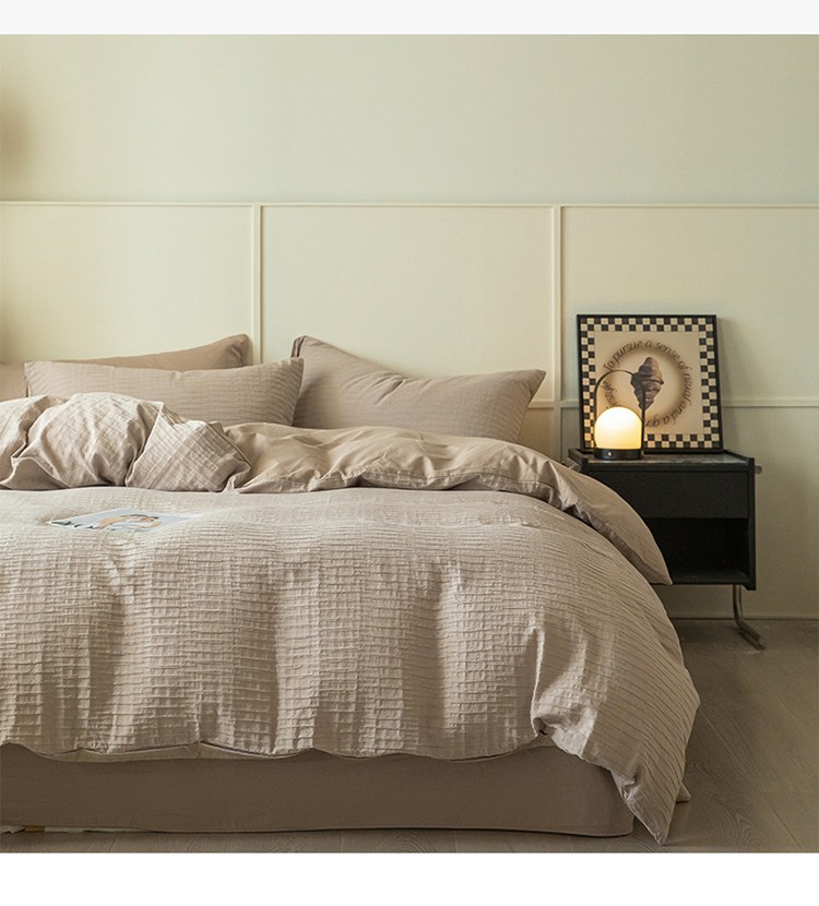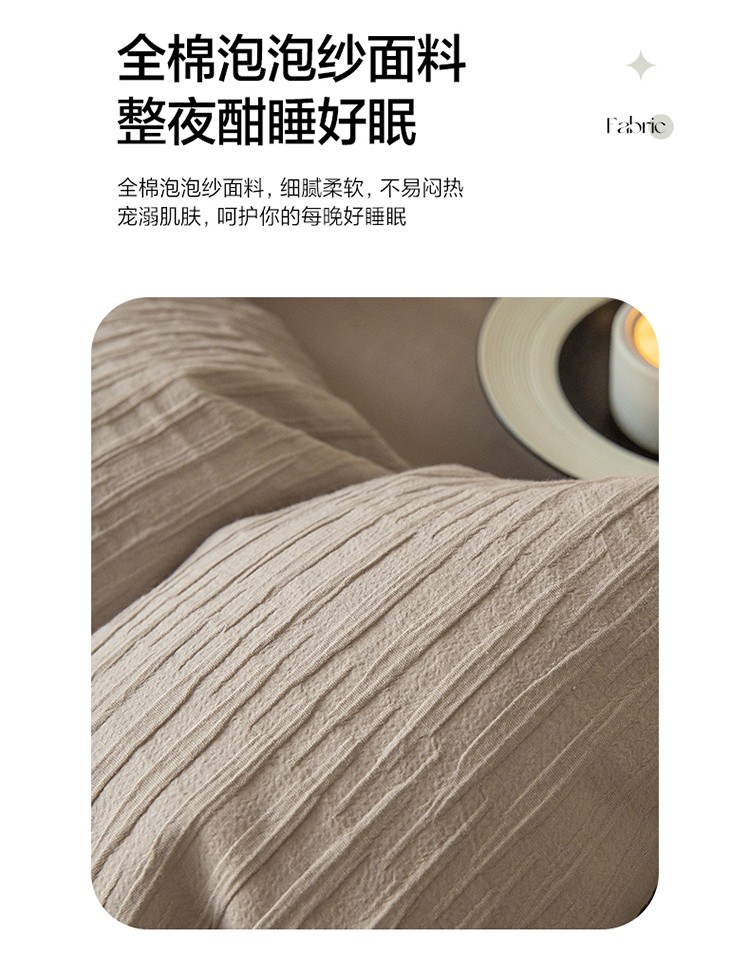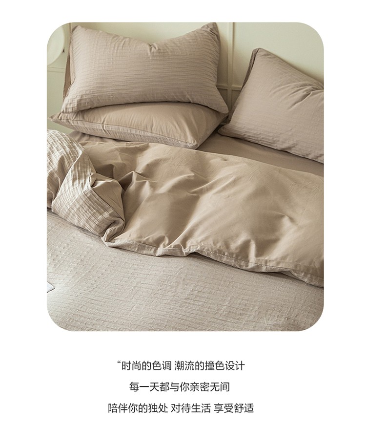 商品名称:雅居纺2023新款系全棉泡泡纱四件套 泡泡纱-杏子灰