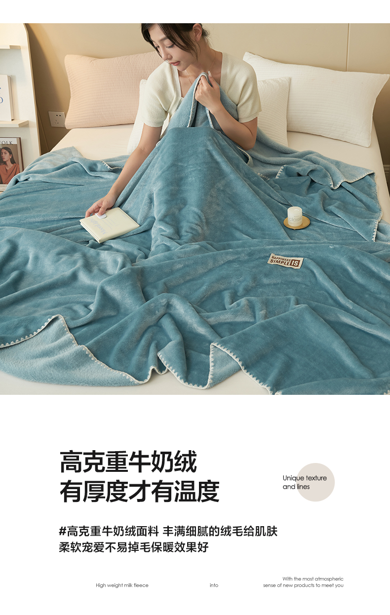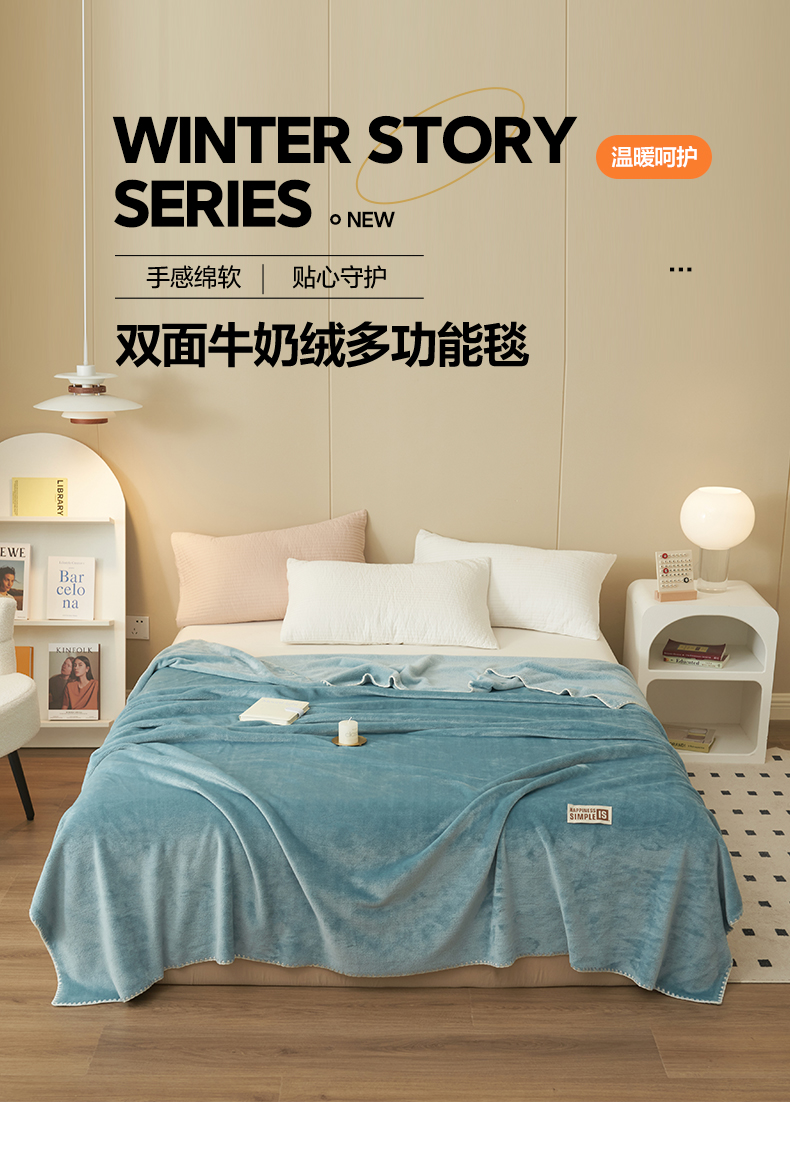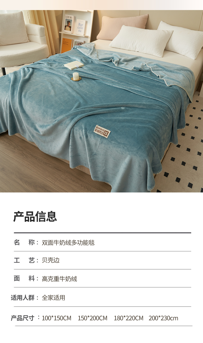 商品名称:畅销被业 2024新款双面牛奶绒多功能毛毯毯子 灰蓝