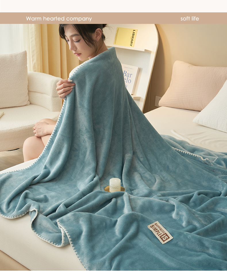 畅销被业 2024新款双面牛奶绒多功能毛毯毯子 灰蓝