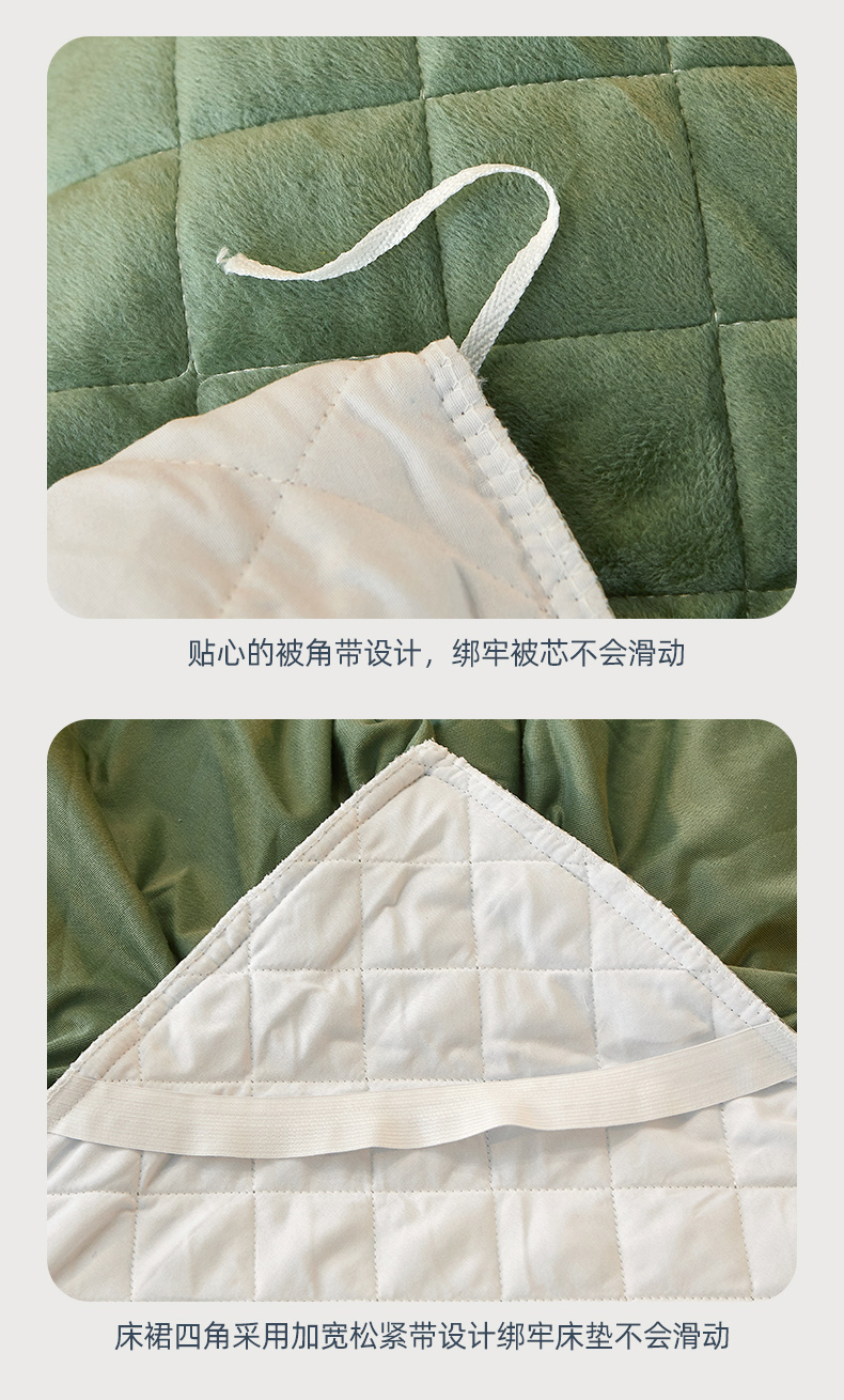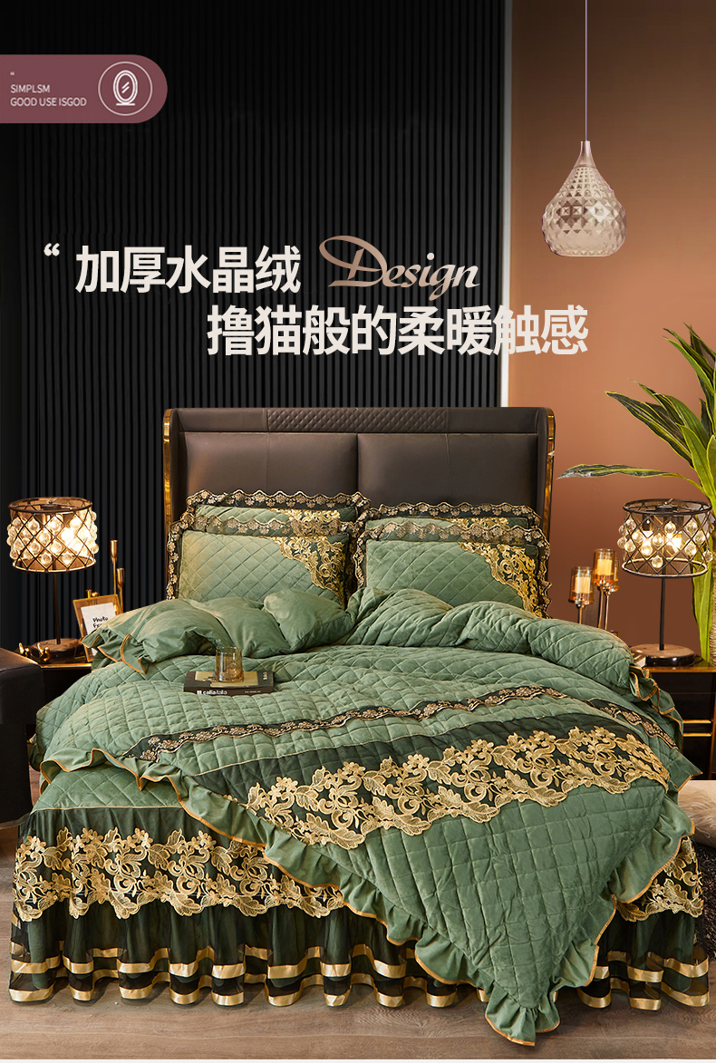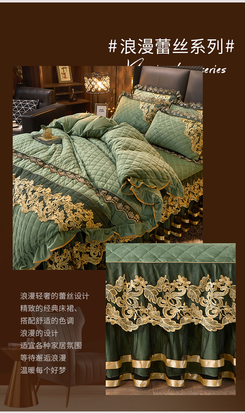当前位置: 91家纺网 > 商品网购 > 床品套件 > 四件套 > 水晶绒四件套 > 恋尚2023新款魅兰莎水晶绒系列被套夹棉床裙四件套 绿色