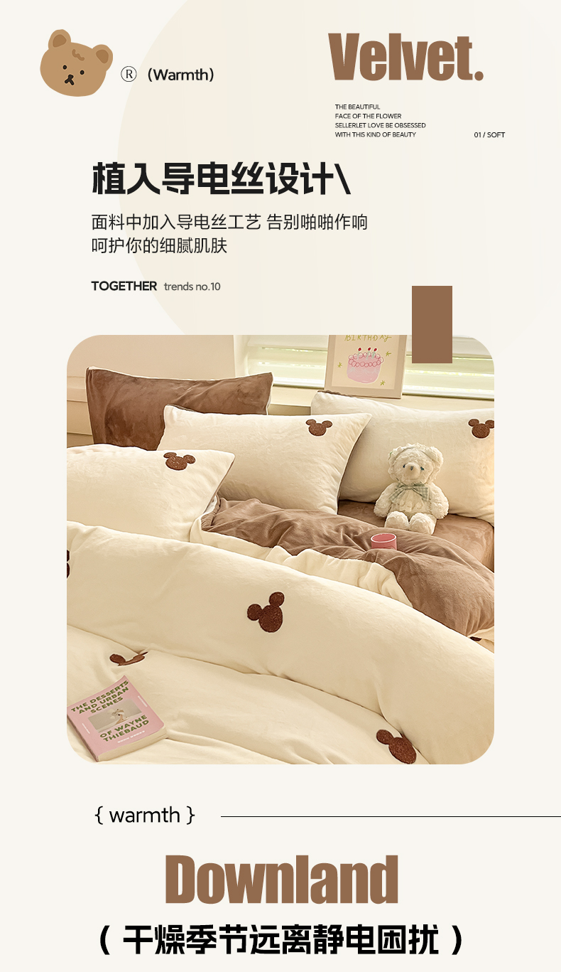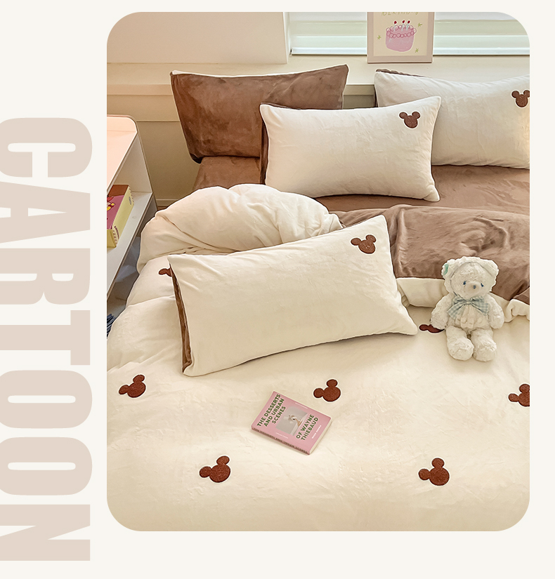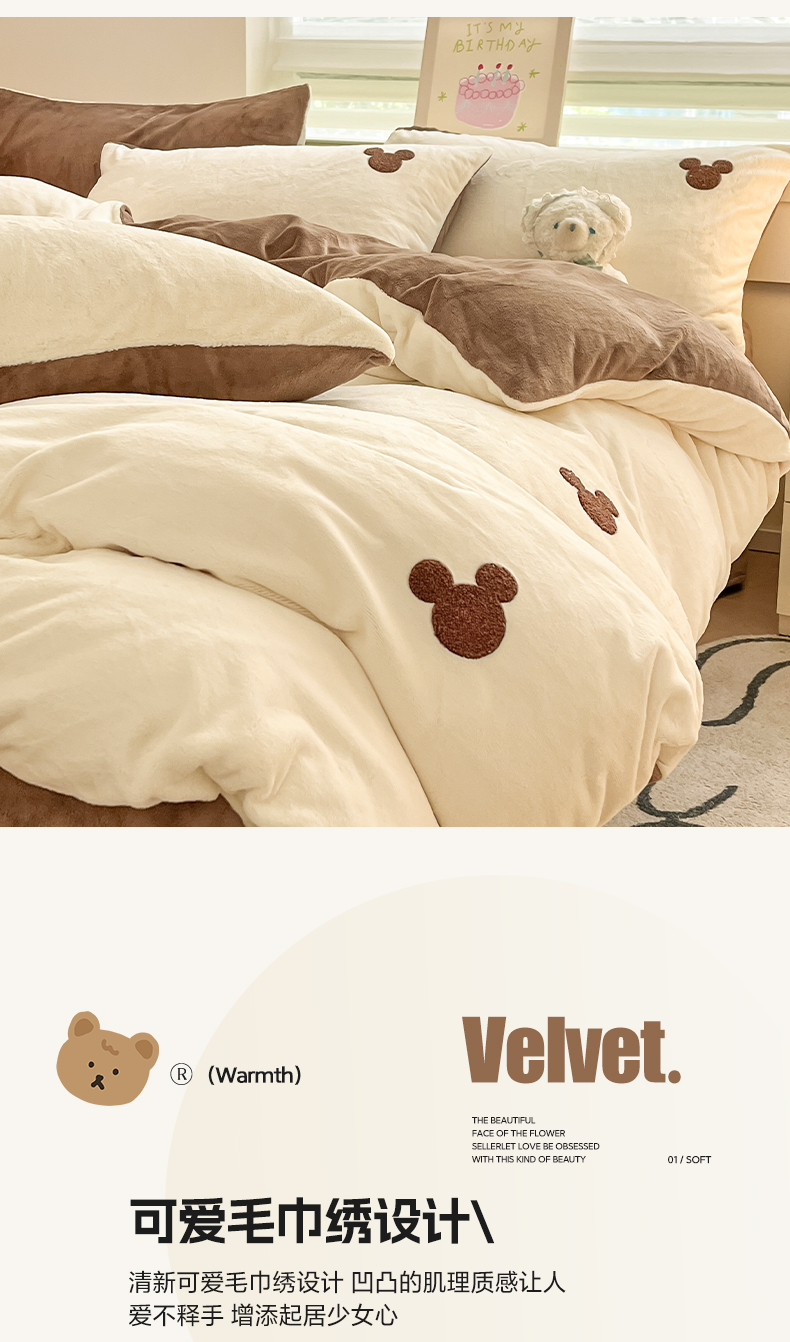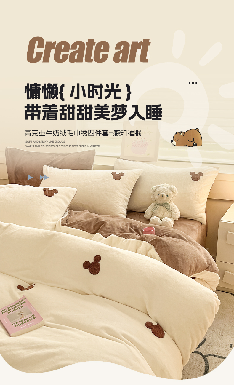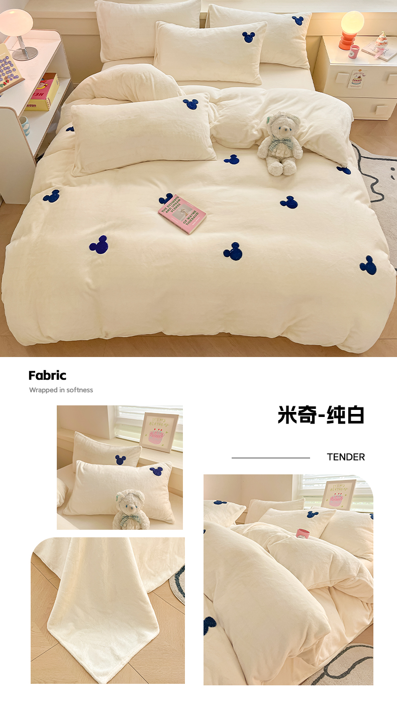商品名称:(总)雅居纺 2023新款200克毛巾绣牛奶绒四件套-小熊米奇系列