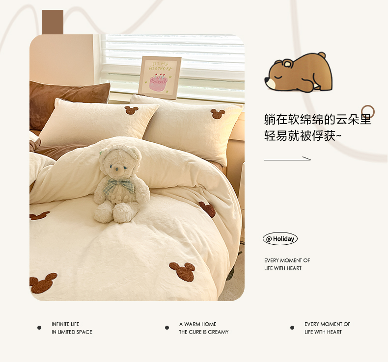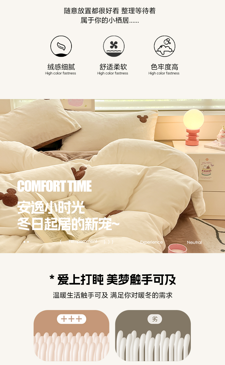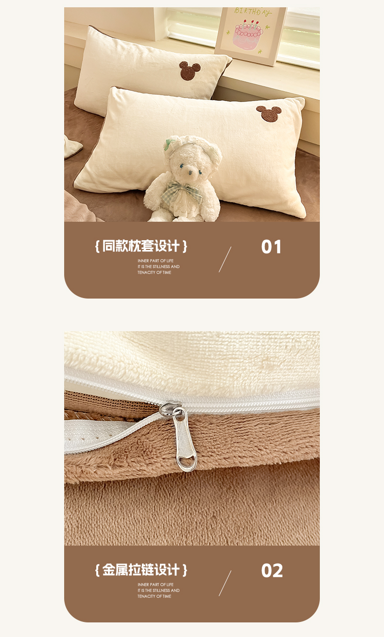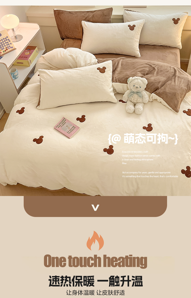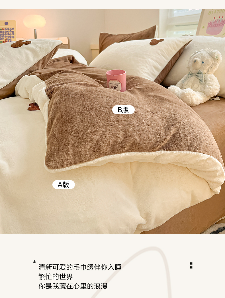 商品名称:(总)雅居纺 2023新款200克毛巾绣牛奶绒四件套-小熊米奇系列