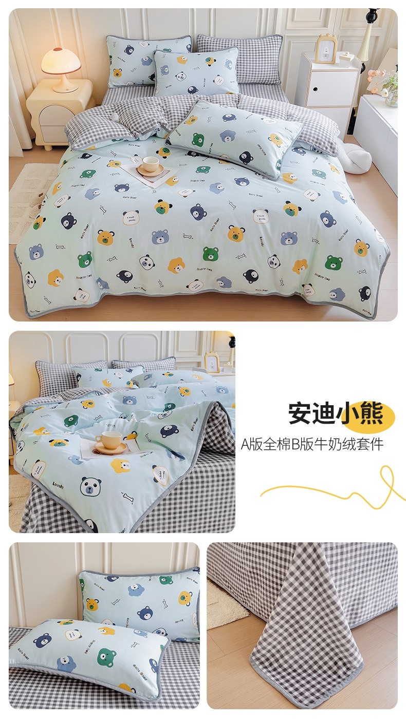 商品名称:(总)琪琪阁 2023新款A棉B绒棉加绒牛奶绒四件套单被套
