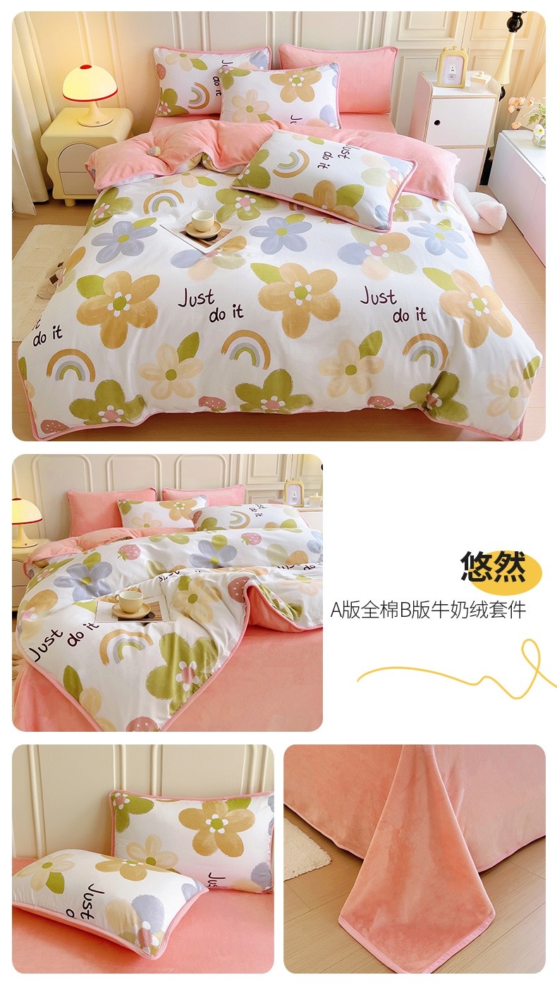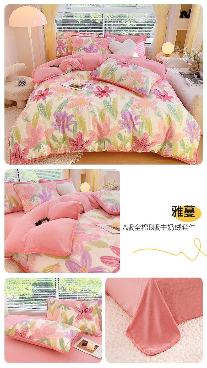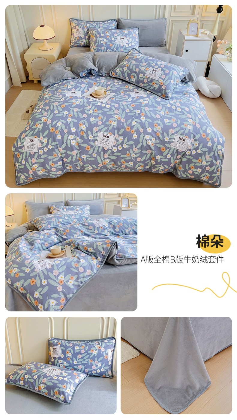 (总)琪琪阁 2023新款A棉B绒棉加绒牛奶绒四件套单被套
