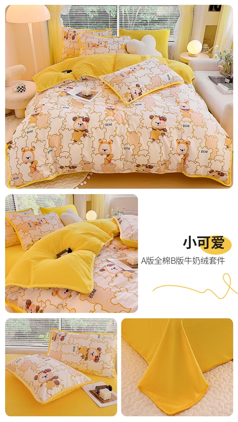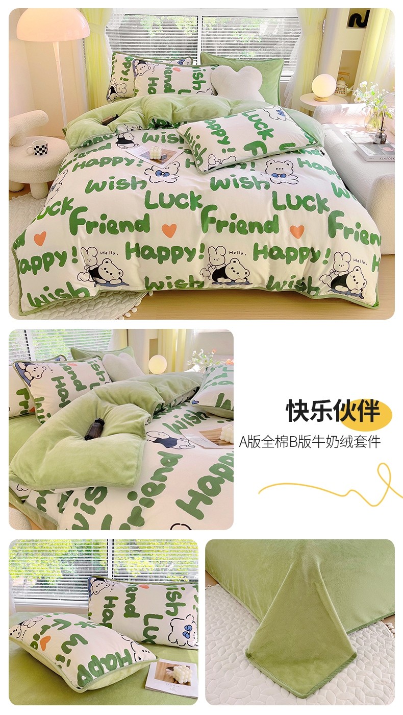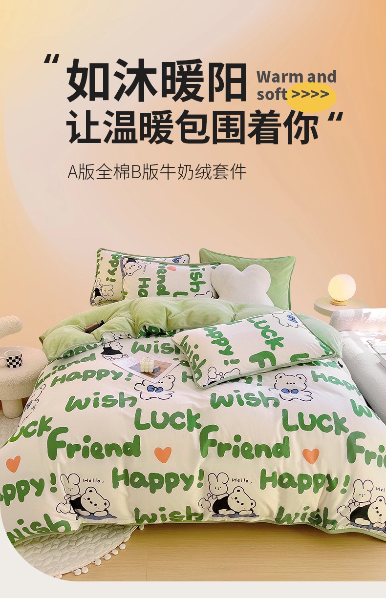 (总)琪琪阁 2023新款A棉B绒棉加绒牛奶绒四件套单被套