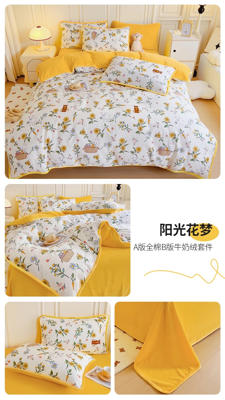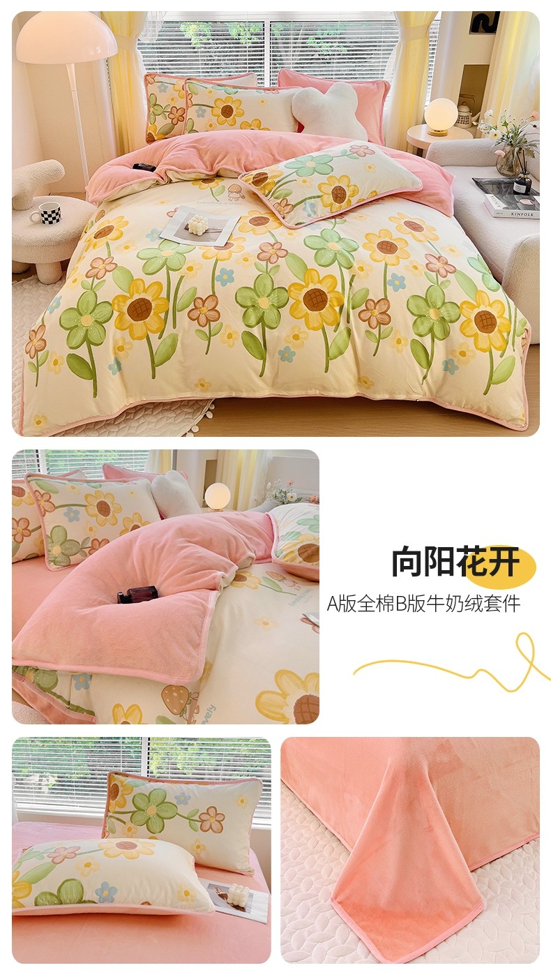 琪琪阁 2023新款A棉B绒棉加绒牛奶绒四件套单被套 向阳花开,向阳花开