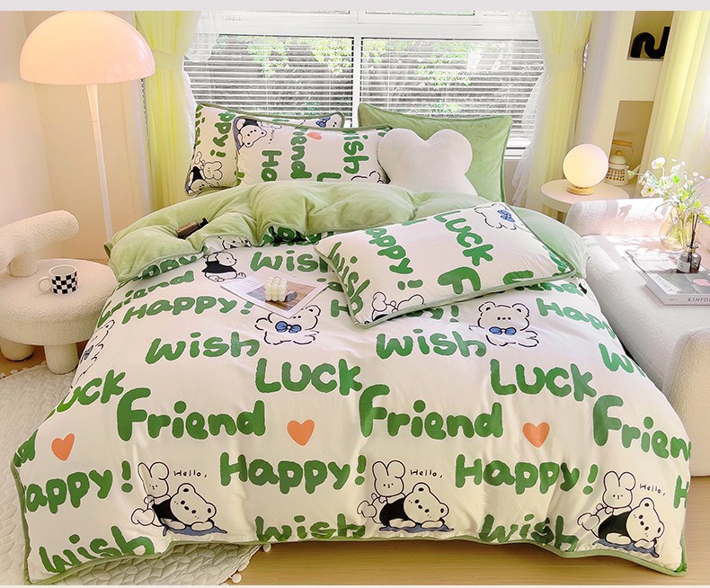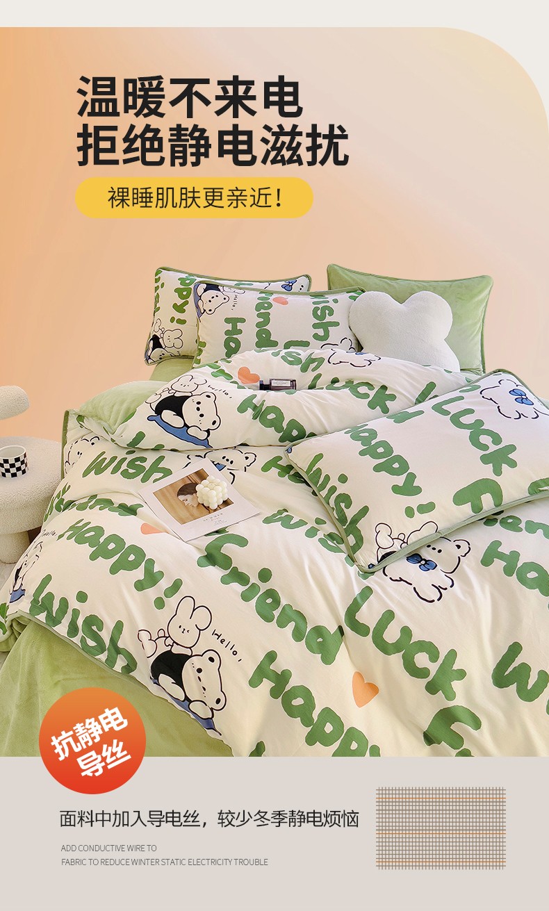 琪琪阁 2023新款A棉B绒棉加绒牛奶绒四件套单被套 快乐伙伴,快乐伙伴