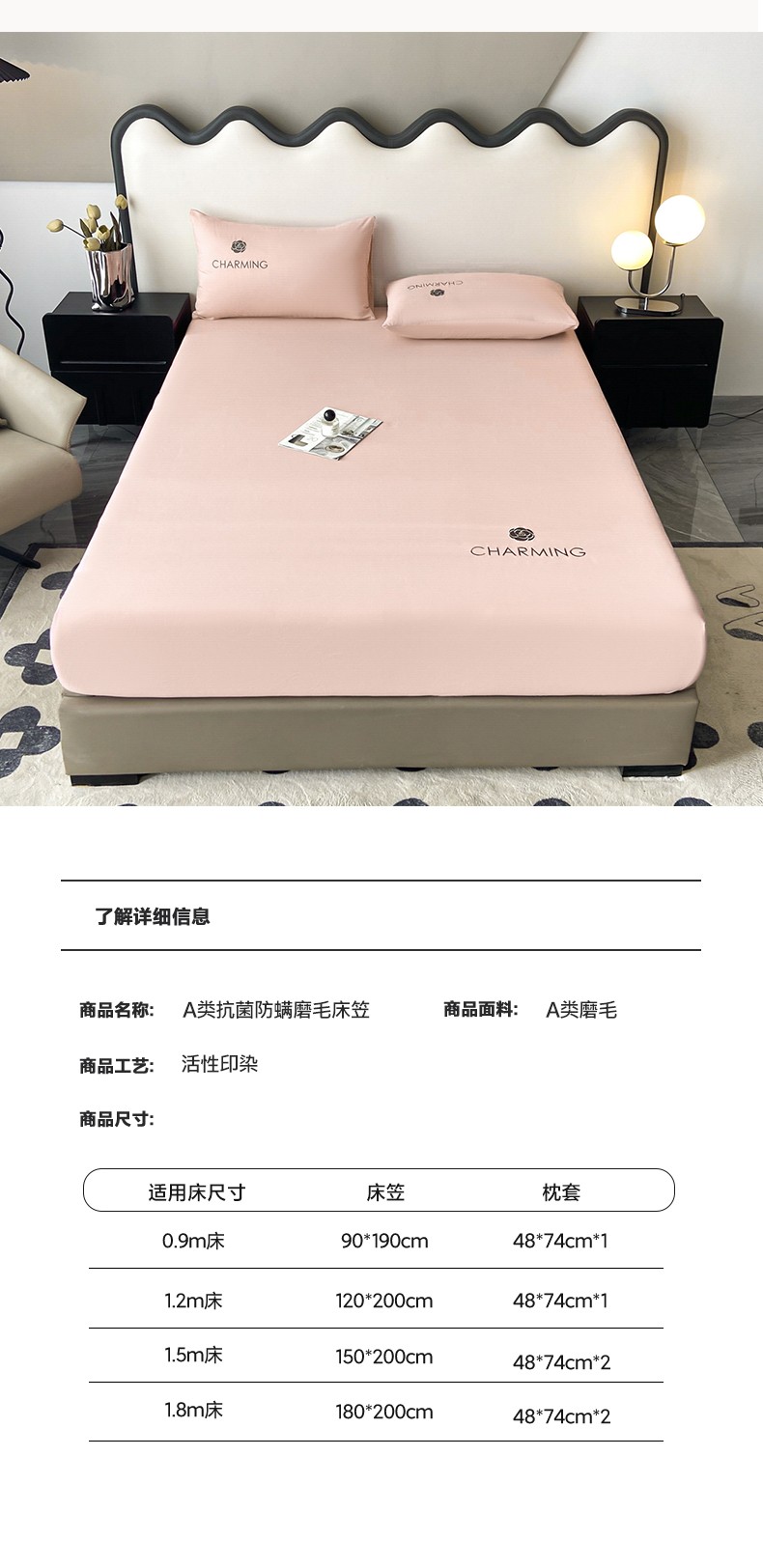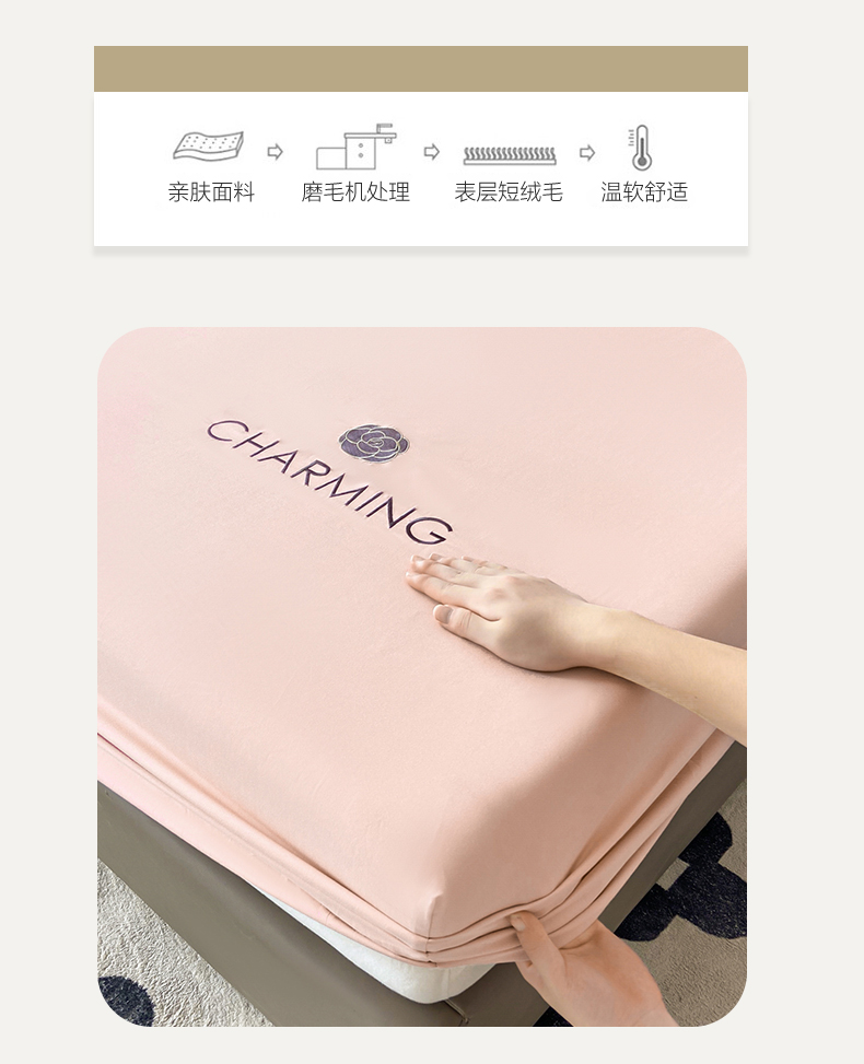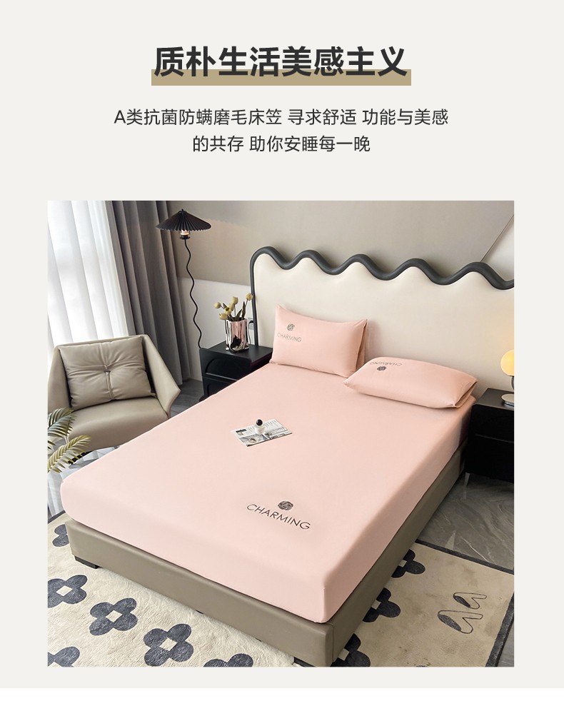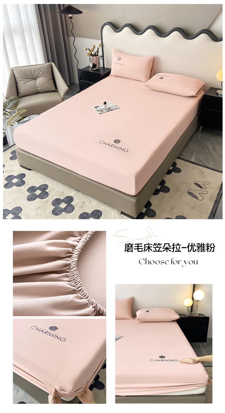 当前位置: 91家纺网 > 商品网购 > 床品套件 > 三件套 > 古吉梦 2024新款A类抗菌防螨磨毛床笠 磨毛床笠朵拉-优雅粉