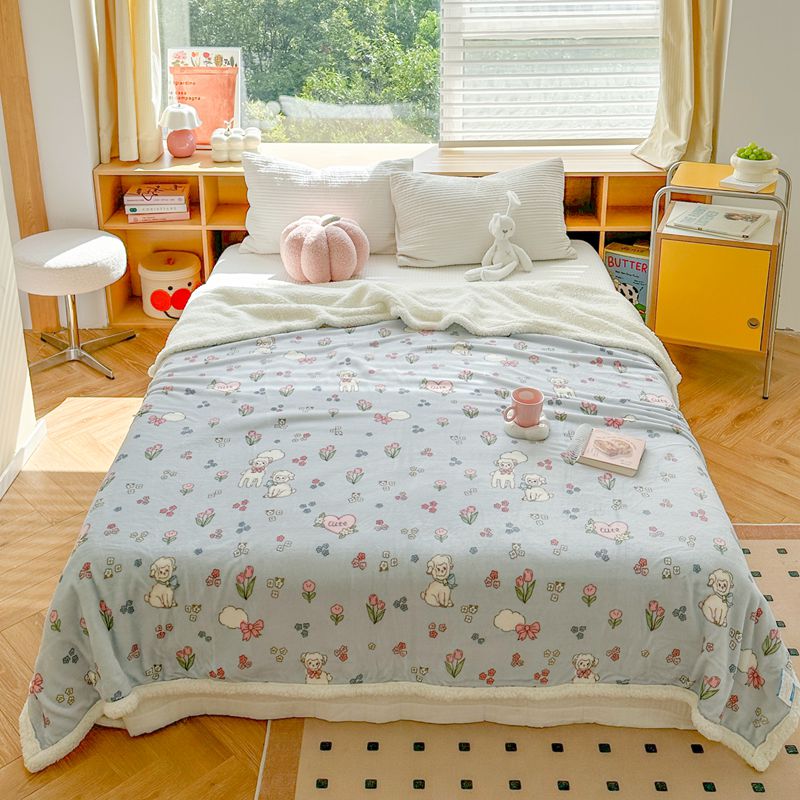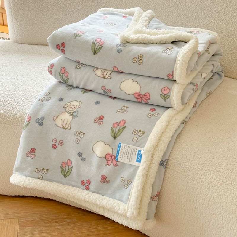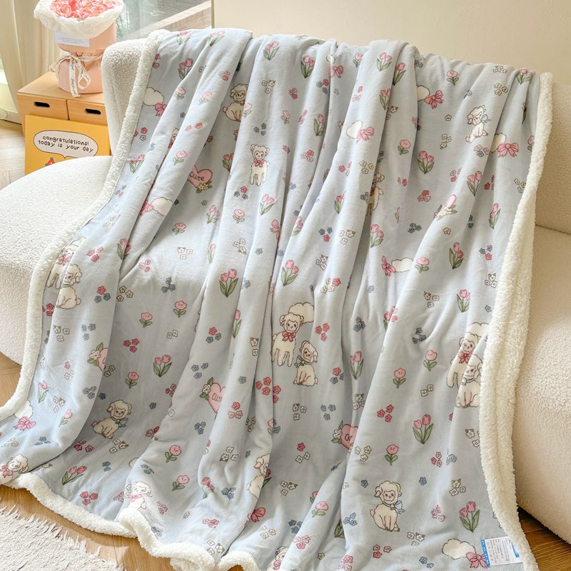 萝莉家纺 2023新款ins加厚牛奶绒羊羔绒毯午睡毯沙发盖毯-风格二 小可爱