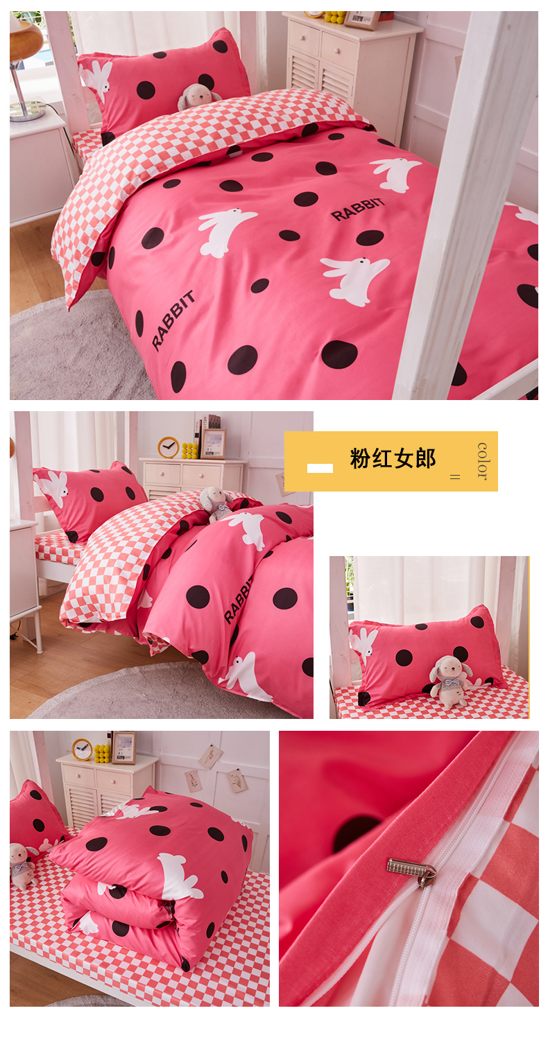 商品名称:2023新款亲肤棉美棉芦荟棉三件套美棉(8月)学生宿舍床 波点兔