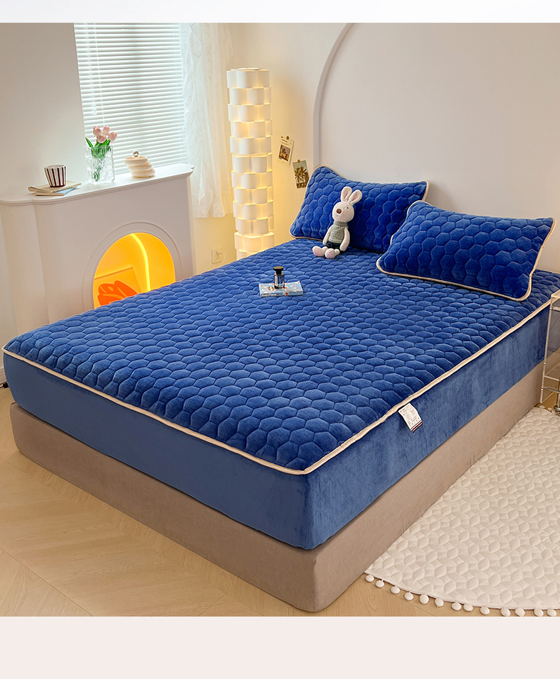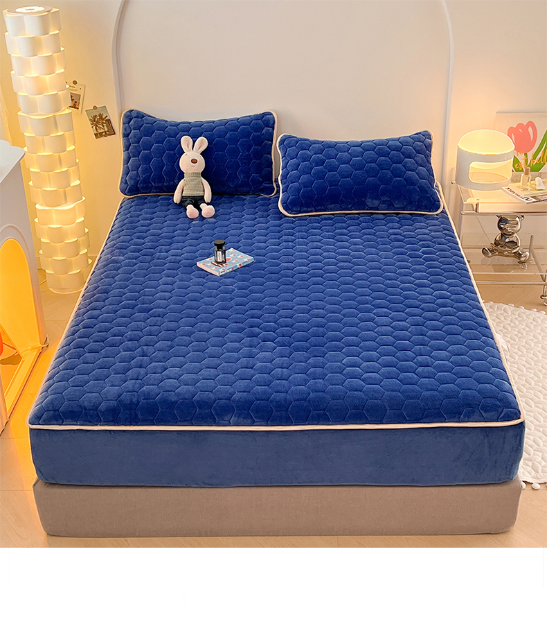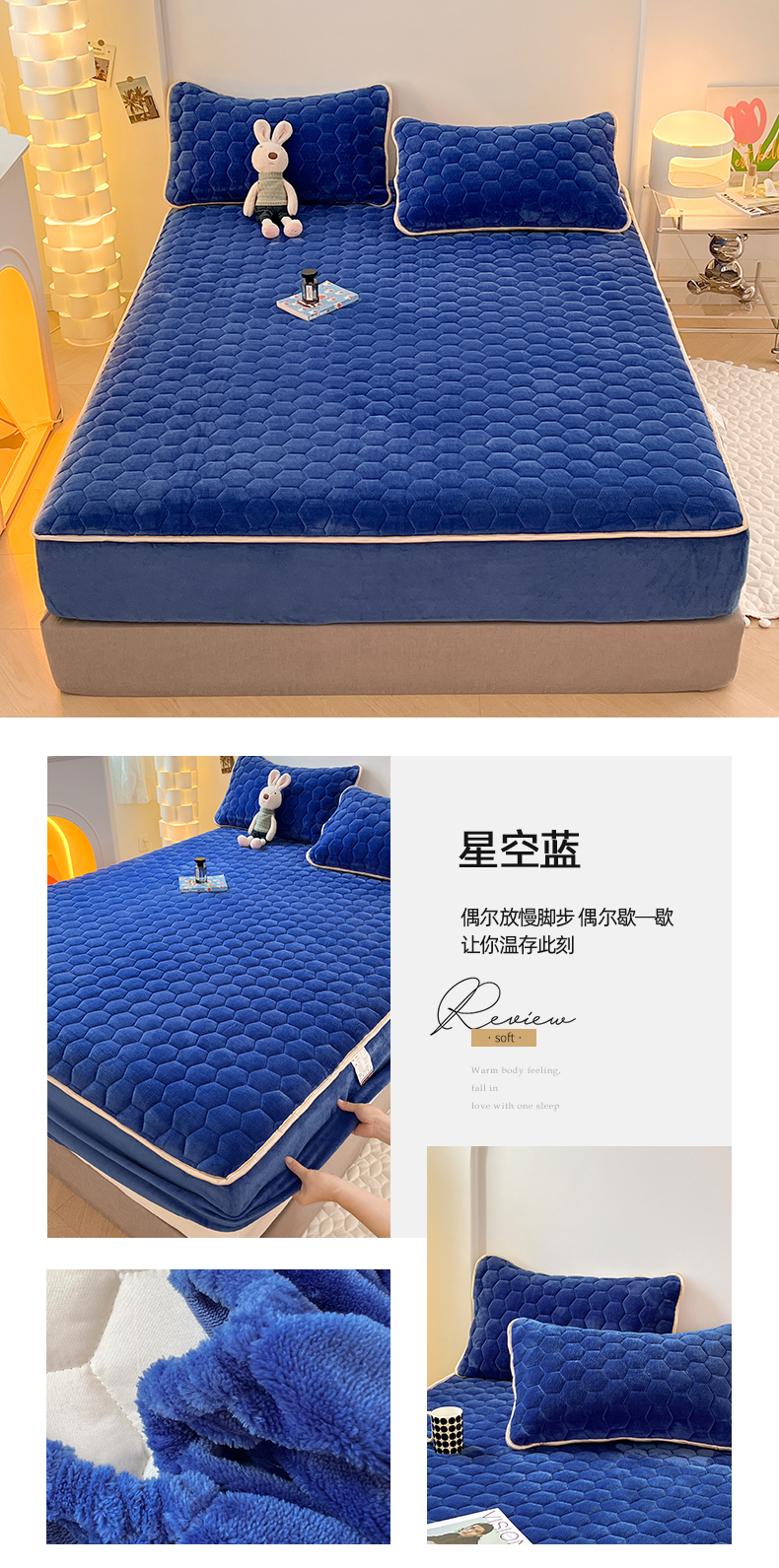 • 91家纺网 家纺一手货源 找家纺 梦舒羽 2025新款牛奶绒夹棉床笠床罩床单床盖床护垫套三件套 星空蓝