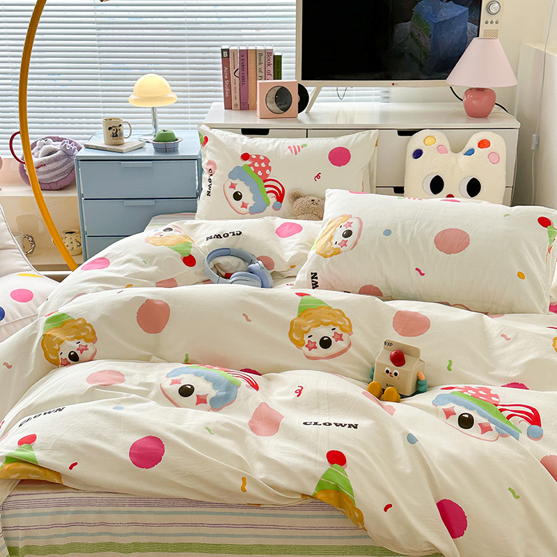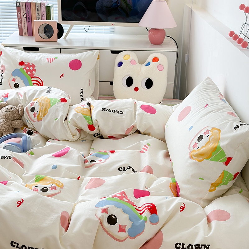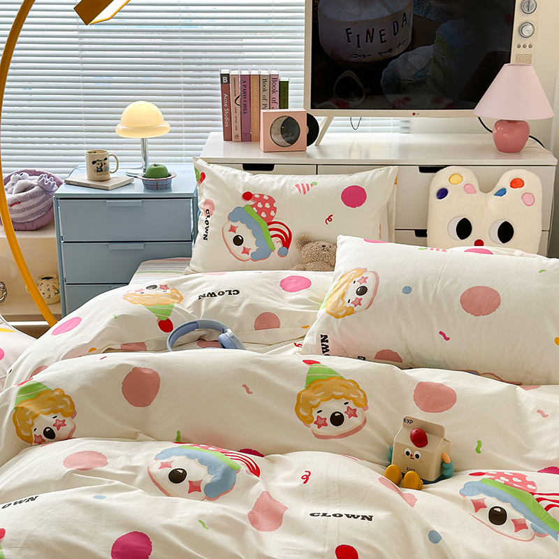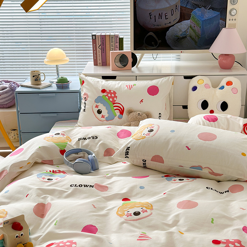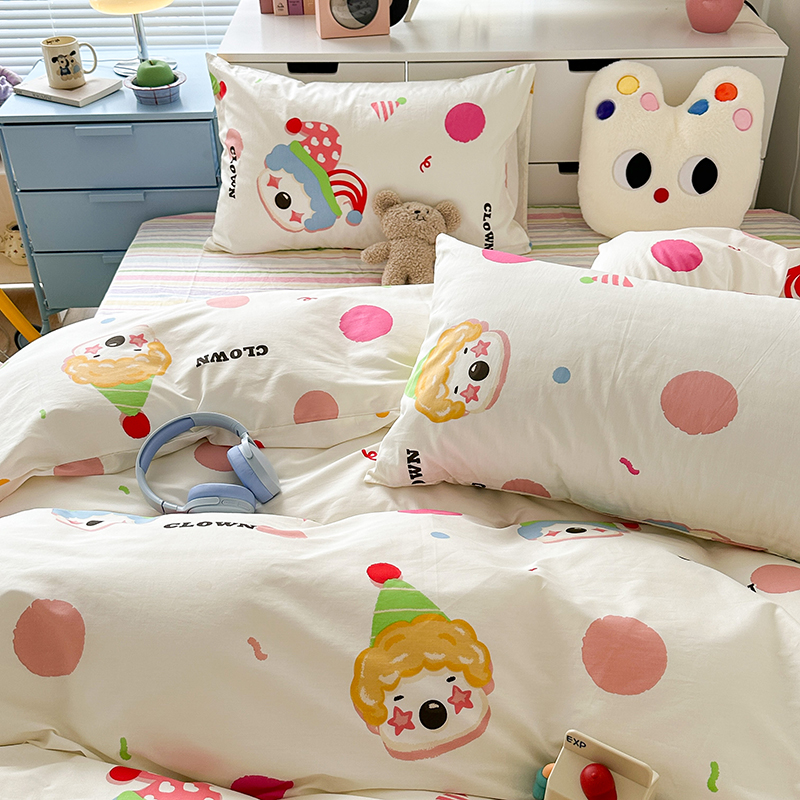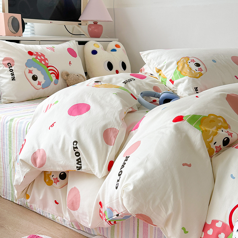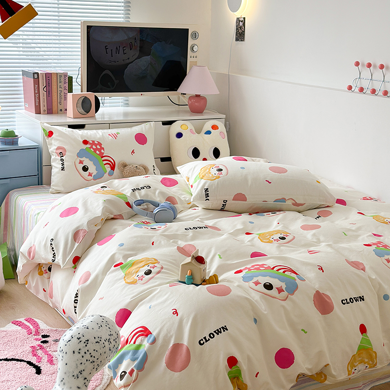 昔可家纺 2023新款全棉卡通动物印花四件套 波点小丑