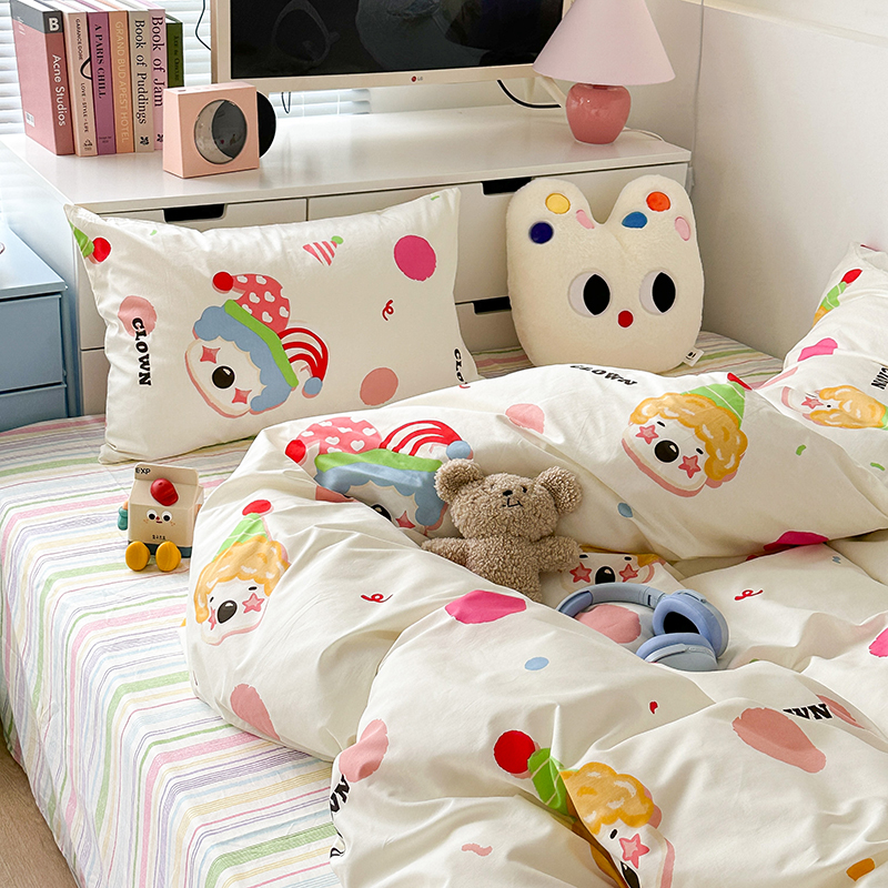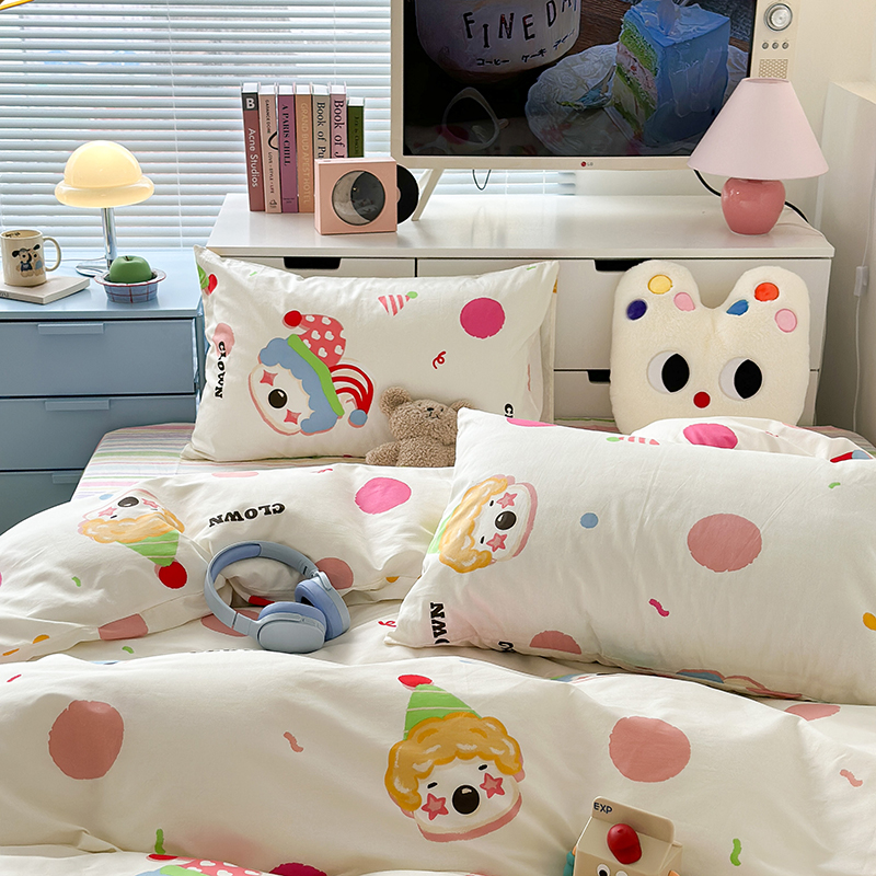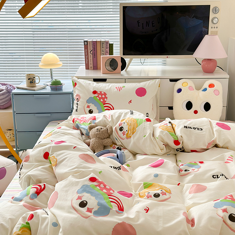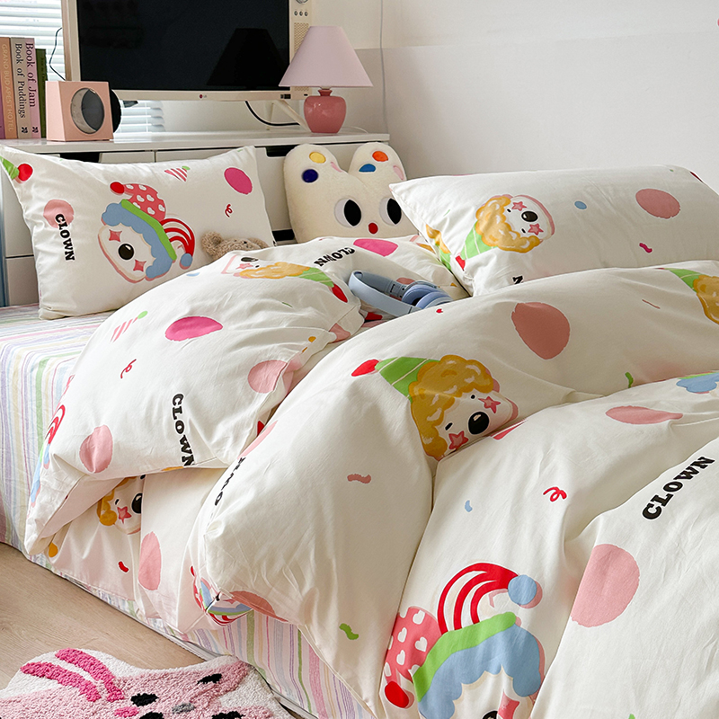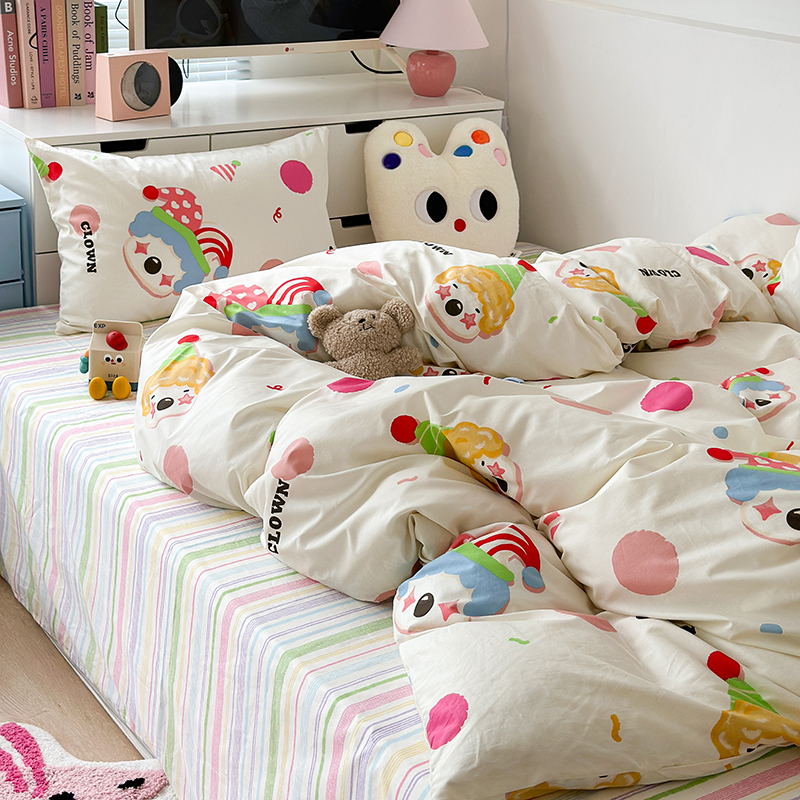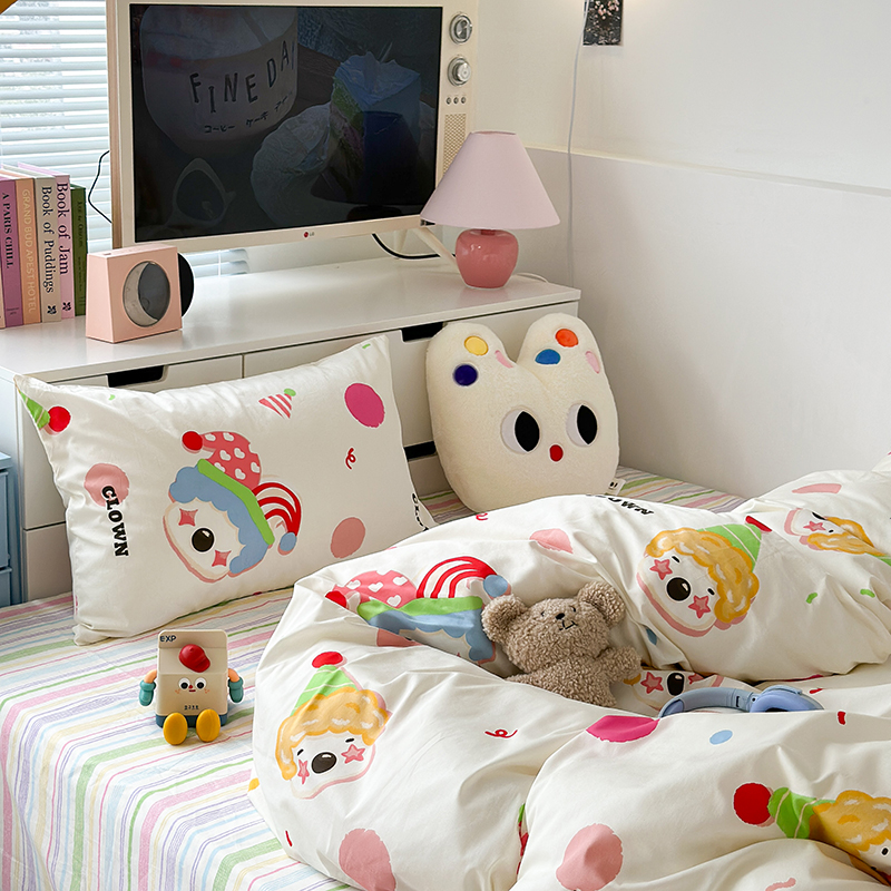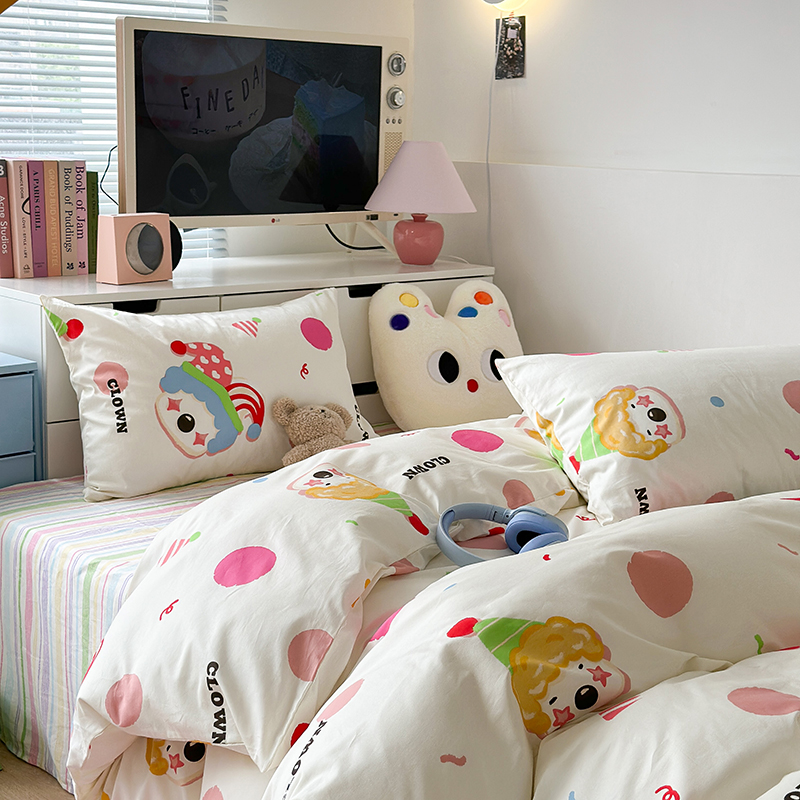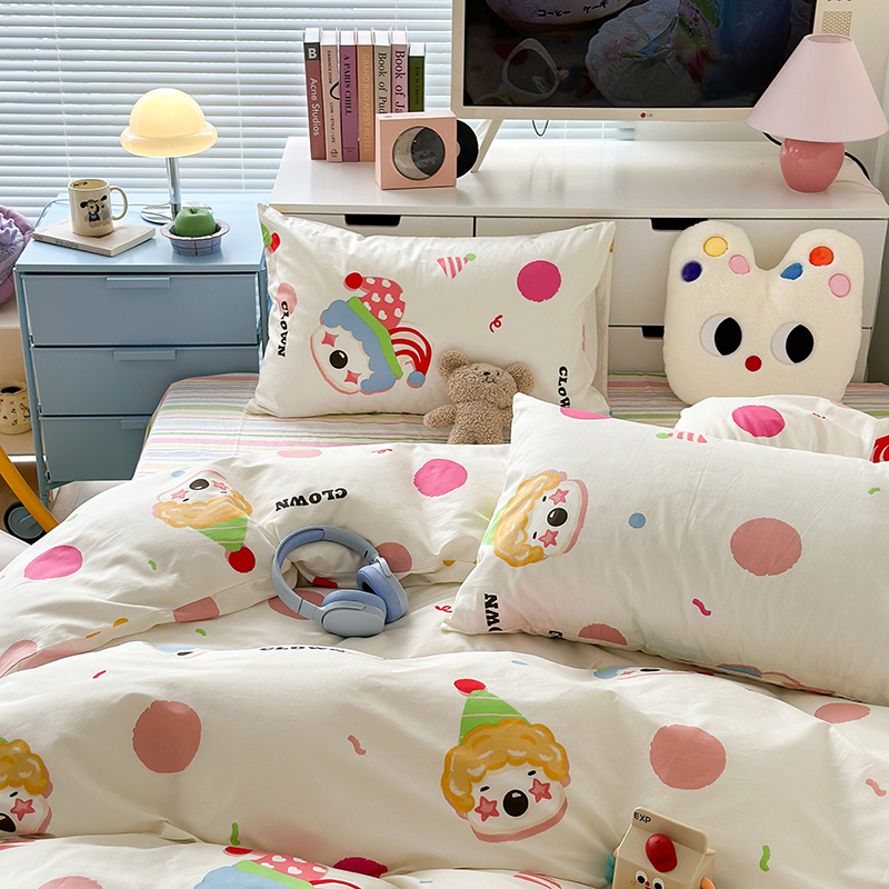 昔可家纺 2023新款全棉卡通动物印花四件套 波点小丑