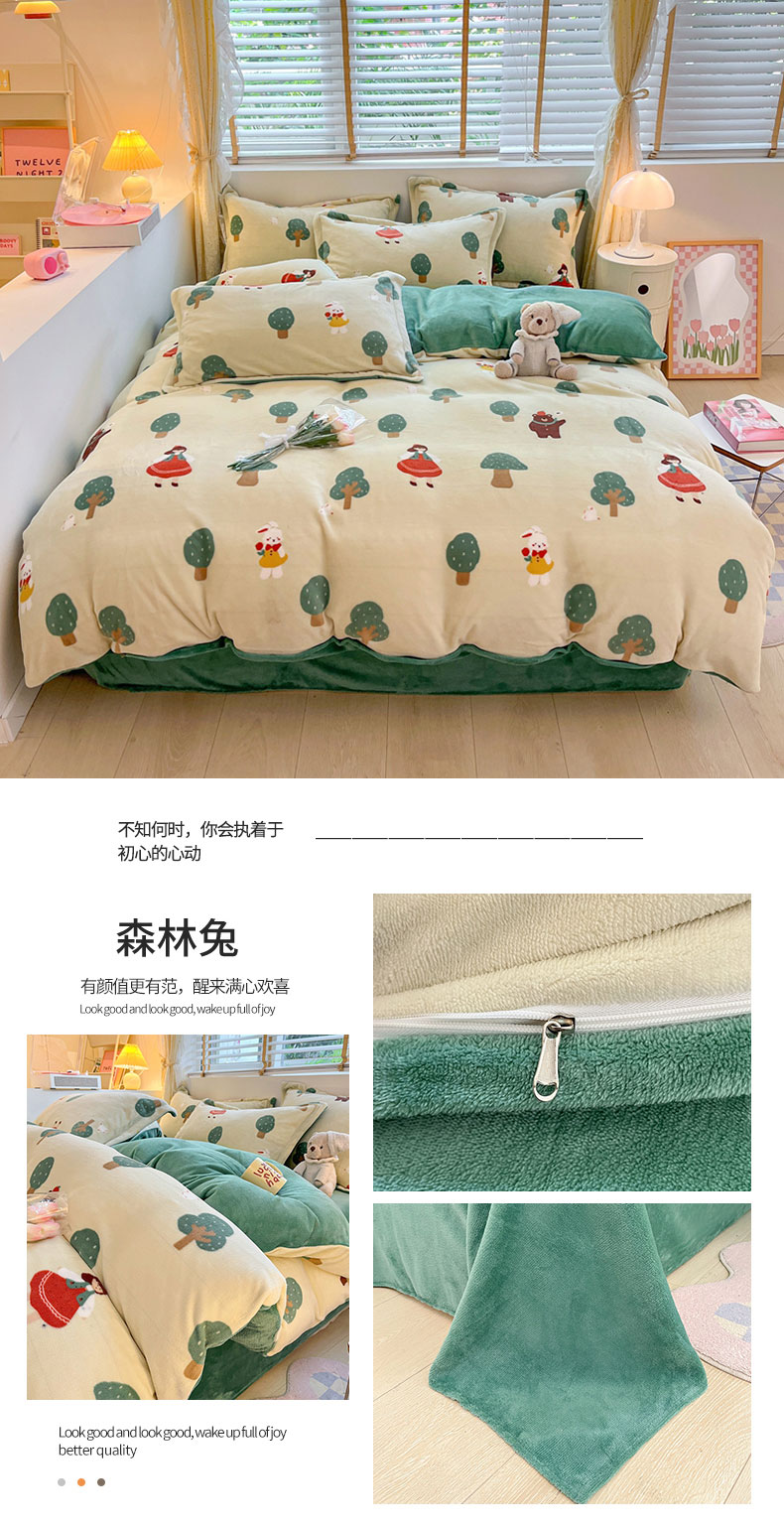 商品名称:康纳利 2023新款印花牛奶绒单被套 森林兔