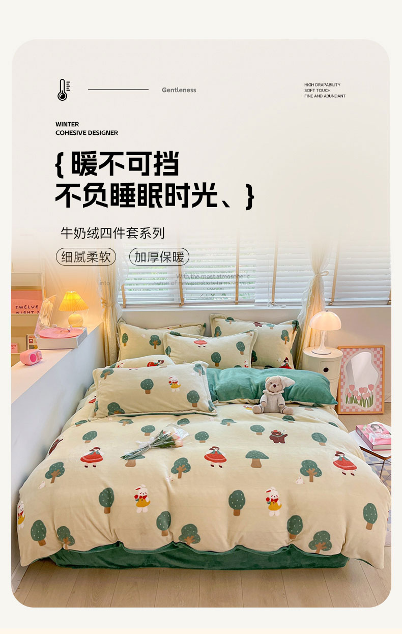 (总)康纳利 2025新款亲舒适加厚牛奶绒花边四件套,KT花园,布丁,粉萌兔,花眠语,幻蝶-白,幻蝶-粉,礼物小咪,凝夜紫