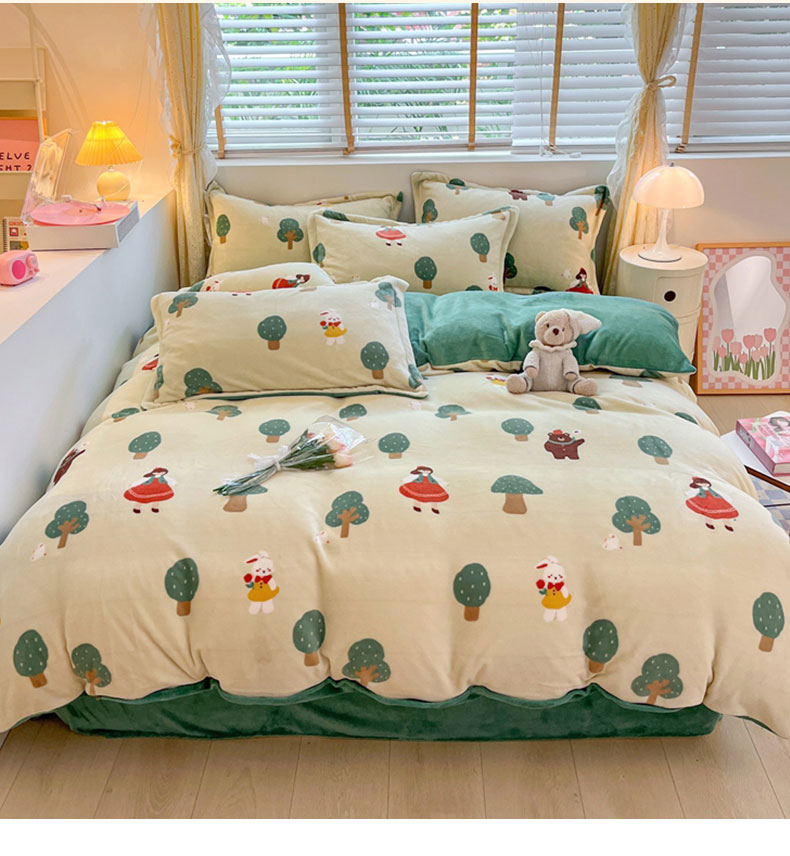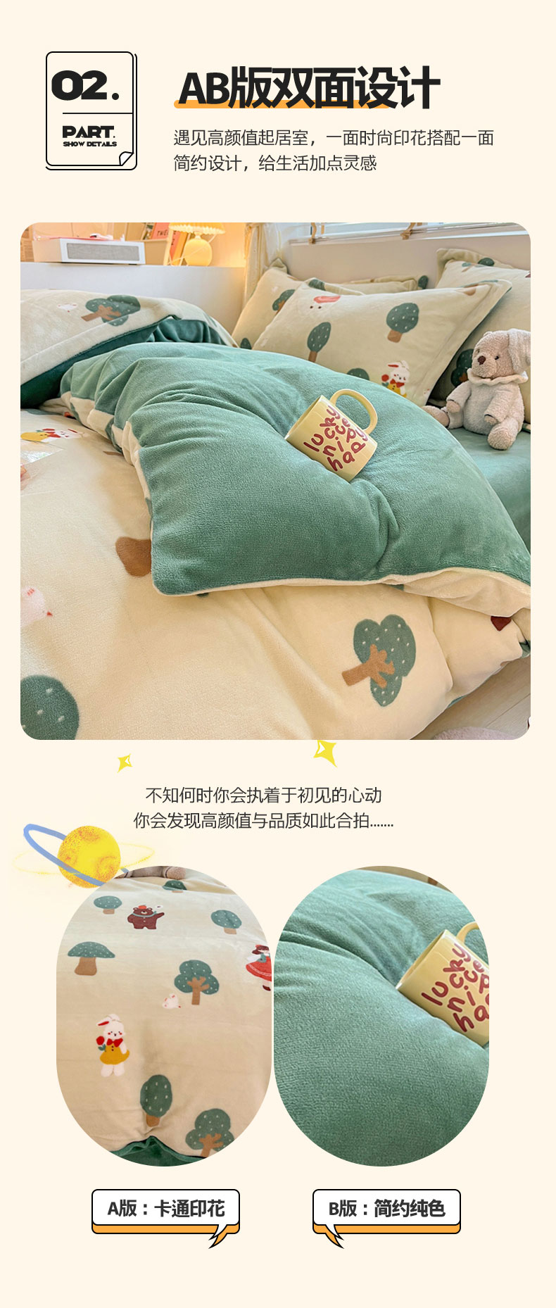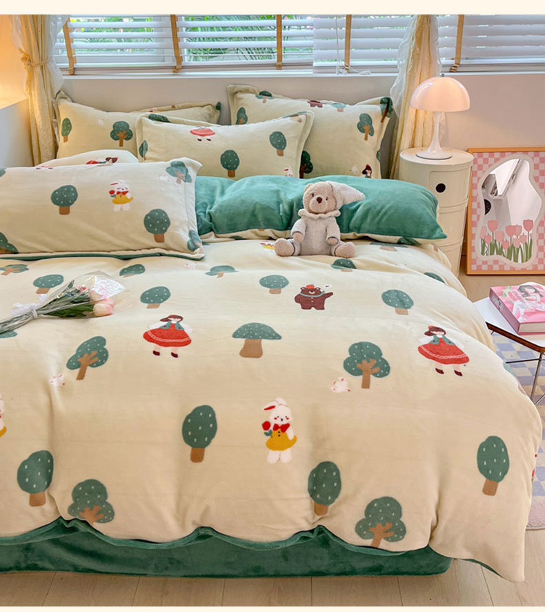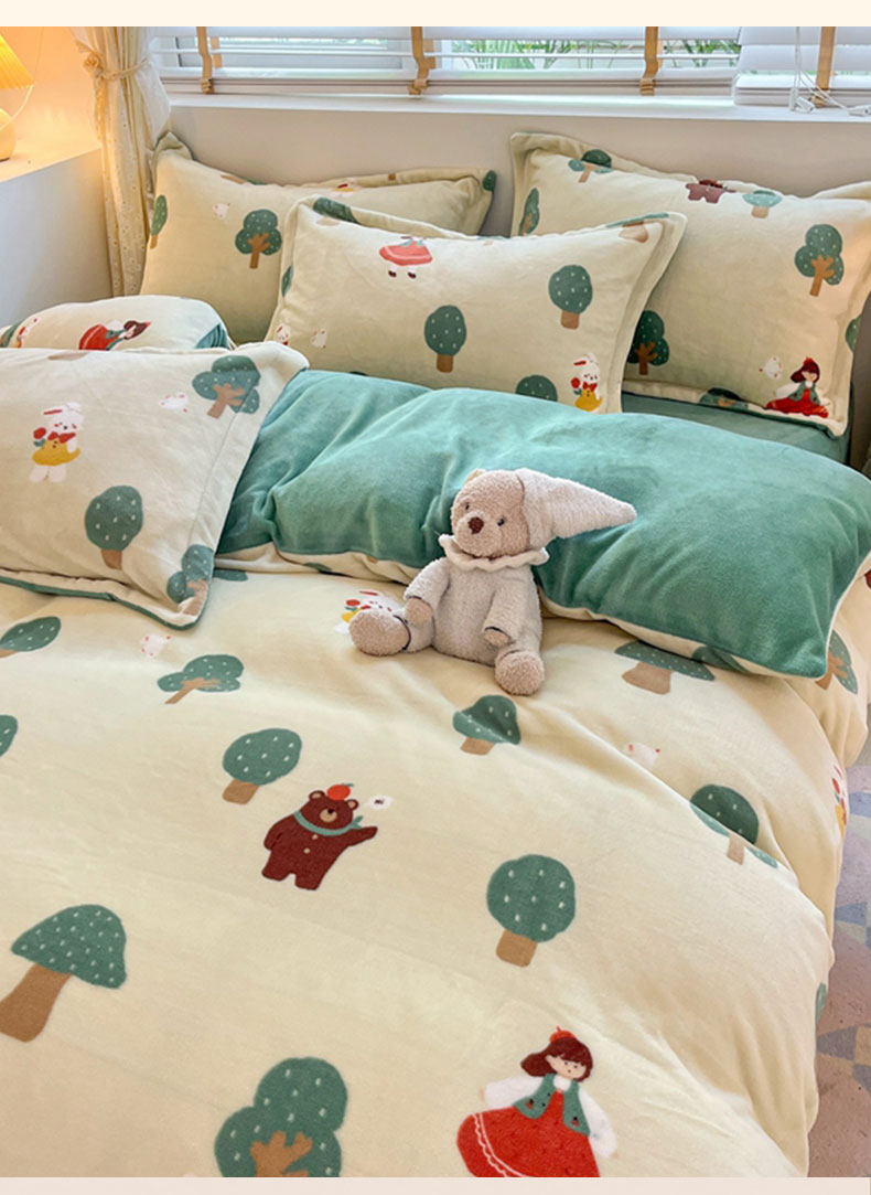 康纳利 2023新款印花牛奶绒单被套 森林兔