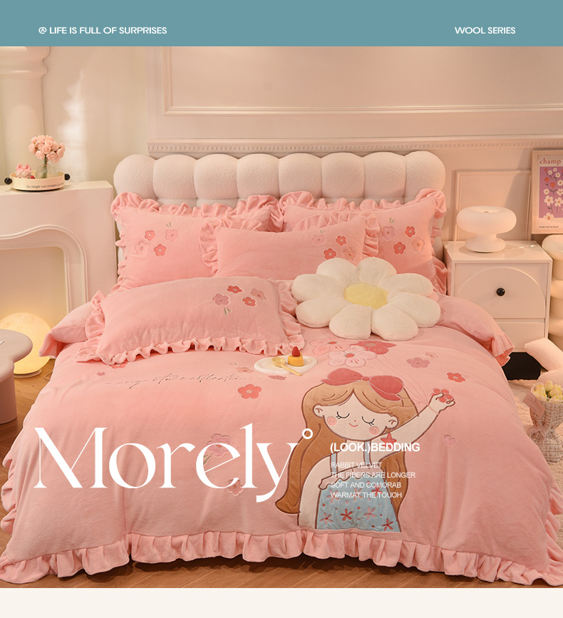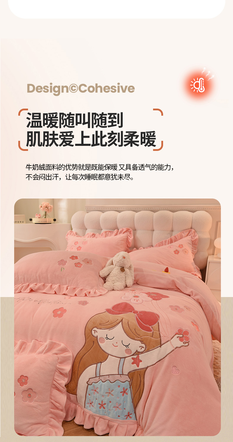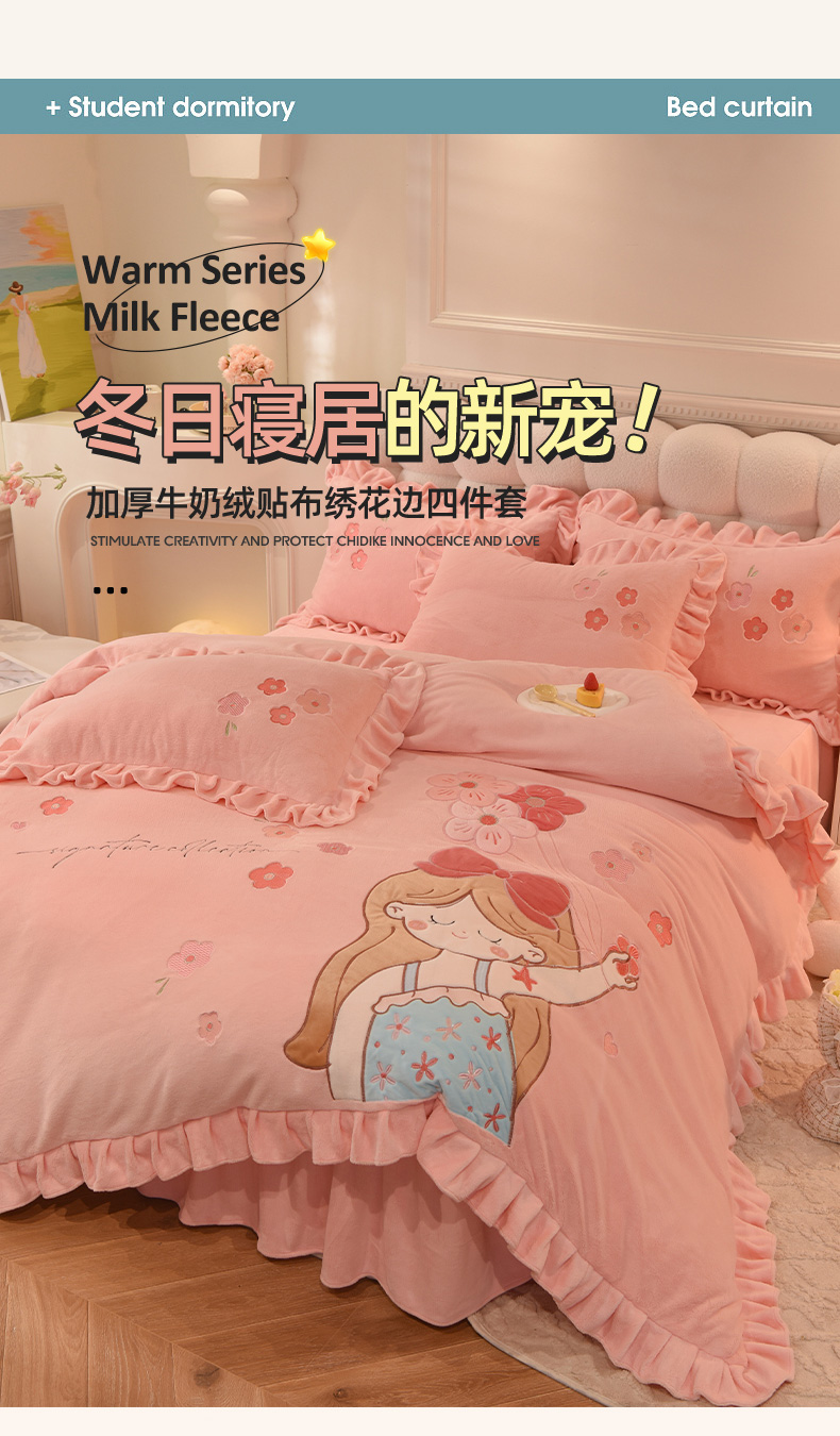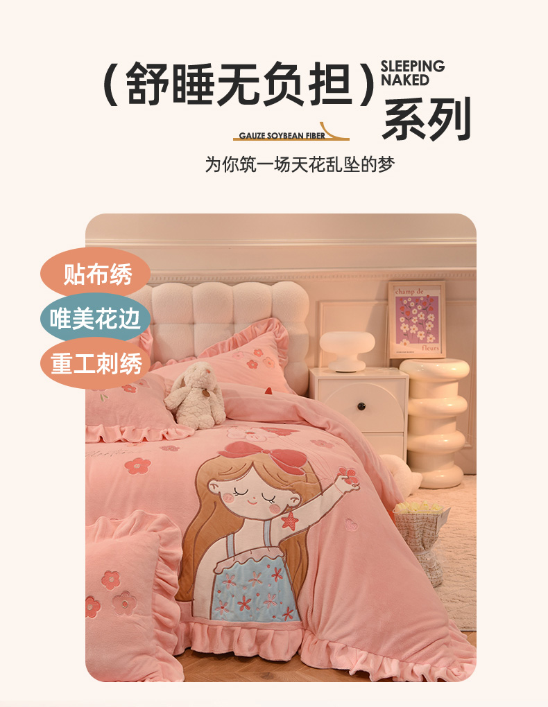 当前位置: 91家纺网 > 商品网购 > 床品套件 > 四件套 > 牛奶绒四件套 > 丝印良品 2023新款高档贴布绣甜心公主牛奶绒四件套 甜心公主-粉玉