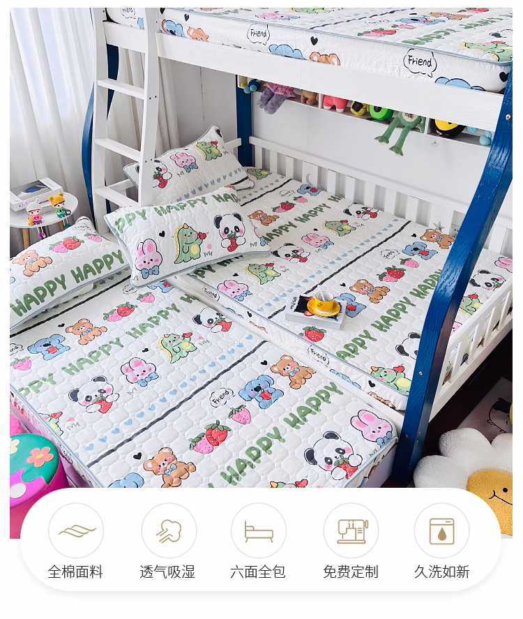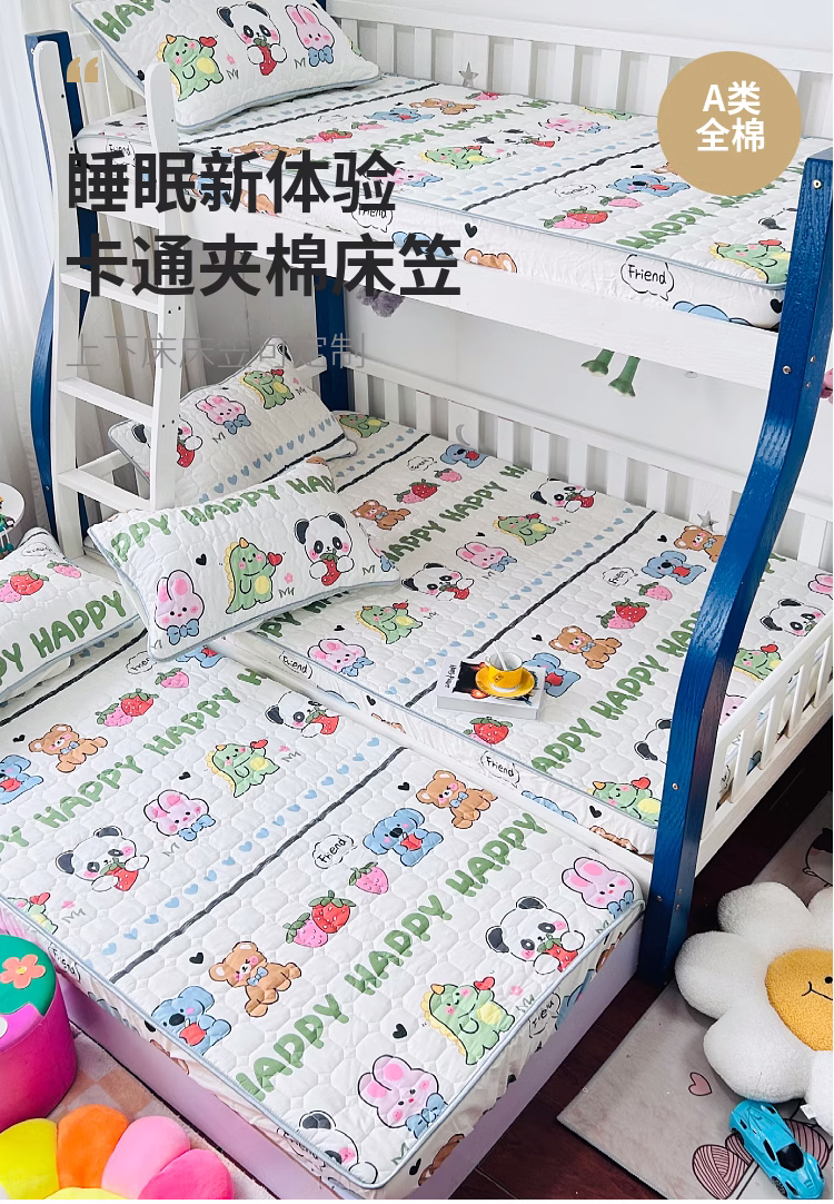 • 91家纺网 家纺一手货源 找家纺 小虾米 2023新款全棉卡通上下床夹棉系列床笠 呆小萌