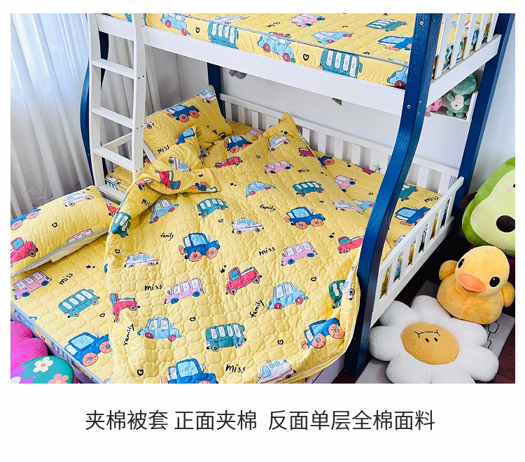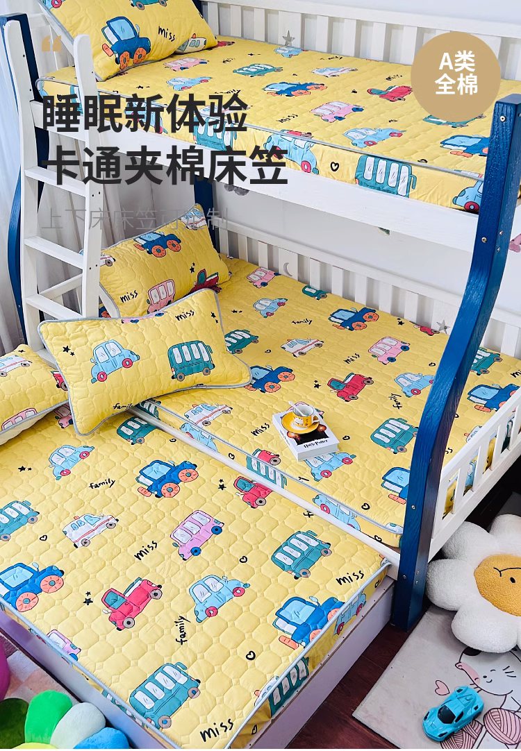 小虾米 2023新款全棉卡通上下床夹棉系列床笠 小汽车黄