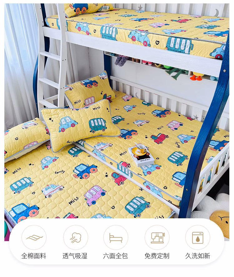 • 91家纺网 家纺一手货源 找家纺 小虾米 2023新款全棉卡通上下床夹棉系列床笠 小汽车黄