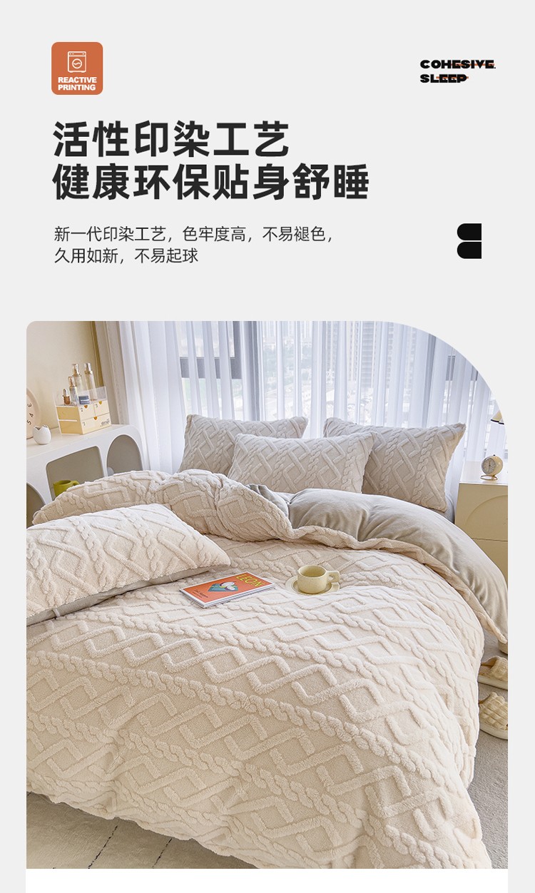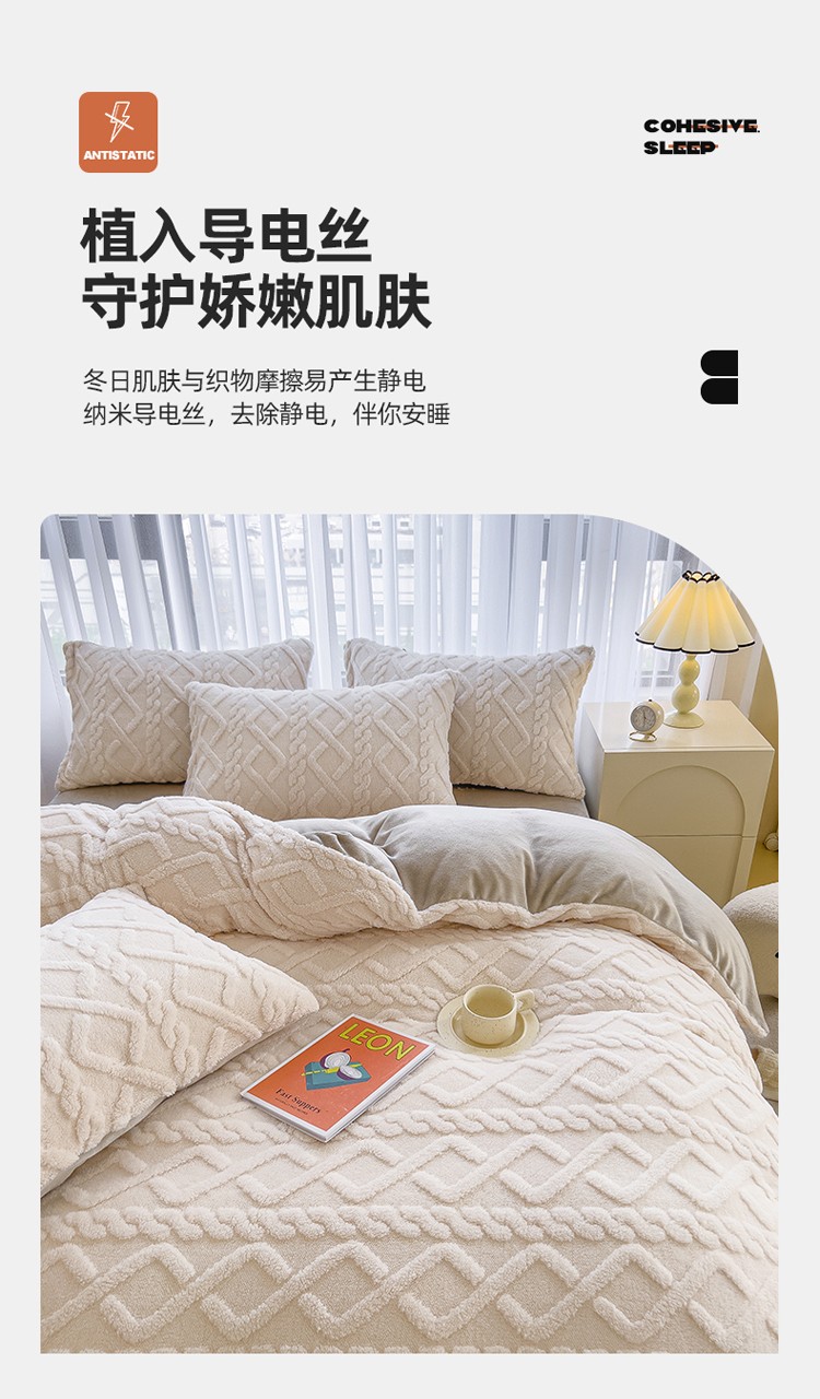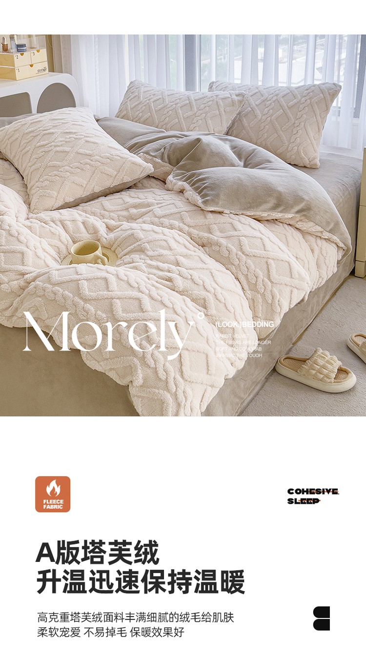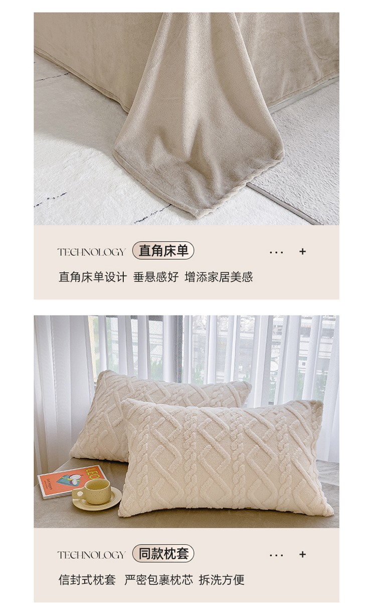商品名称:欧冠 2023秋冬加厚塔芙绒简约款牛奶绒四件套 奶白灰