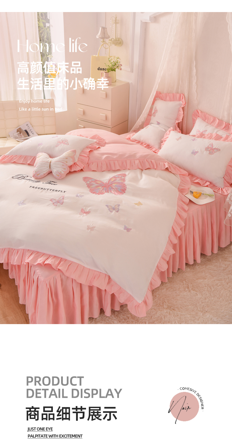 商品名称:(总)丝印良品 2023新款秋冬保暖云锦棉刺绣花边羽蝶系列四件套