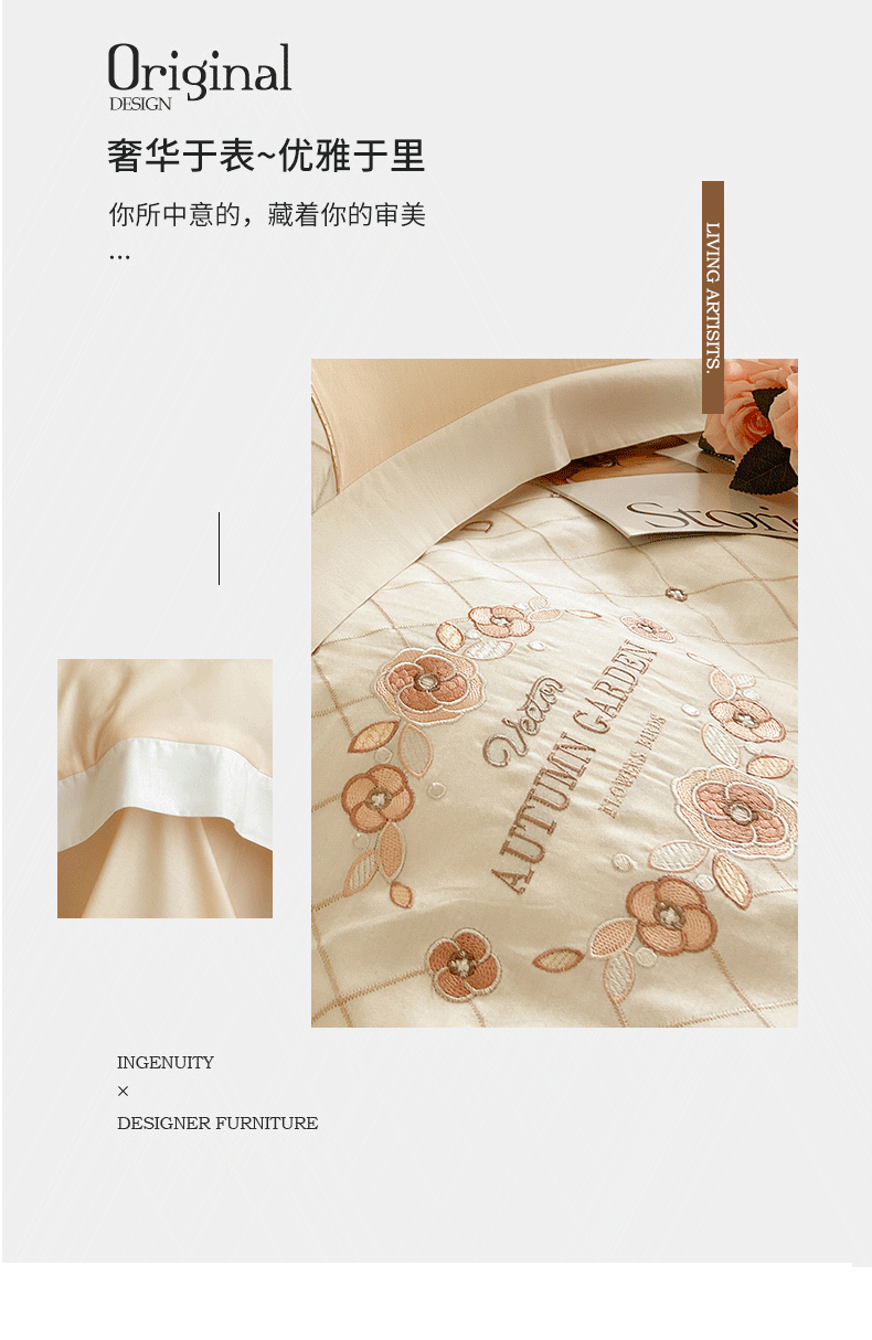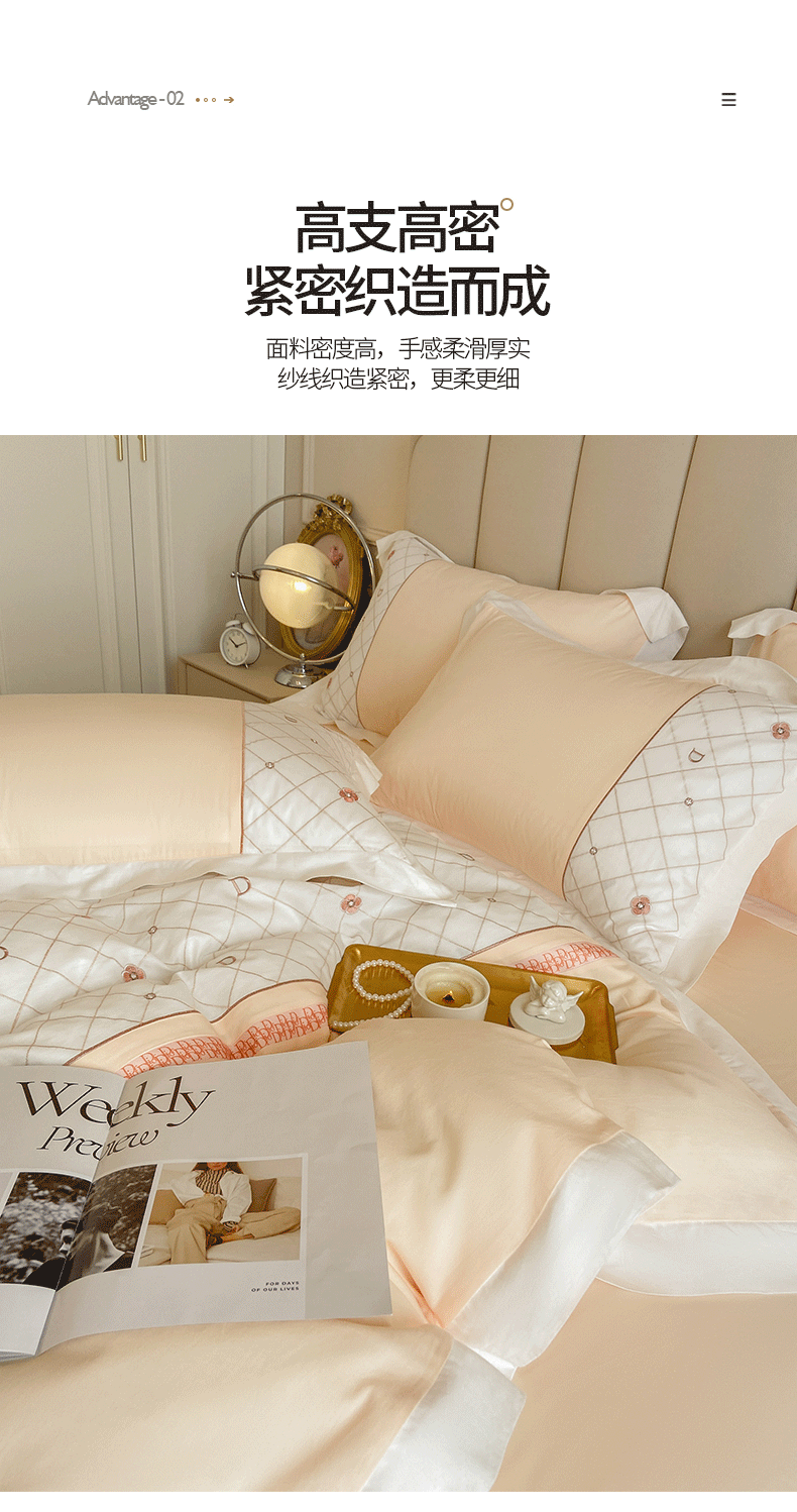 丝印良品 2023秋冬保暖60S全棉刺绣拼接菲曼系列四件套 菲曼-香槟