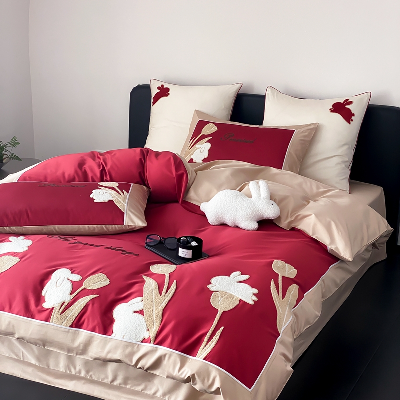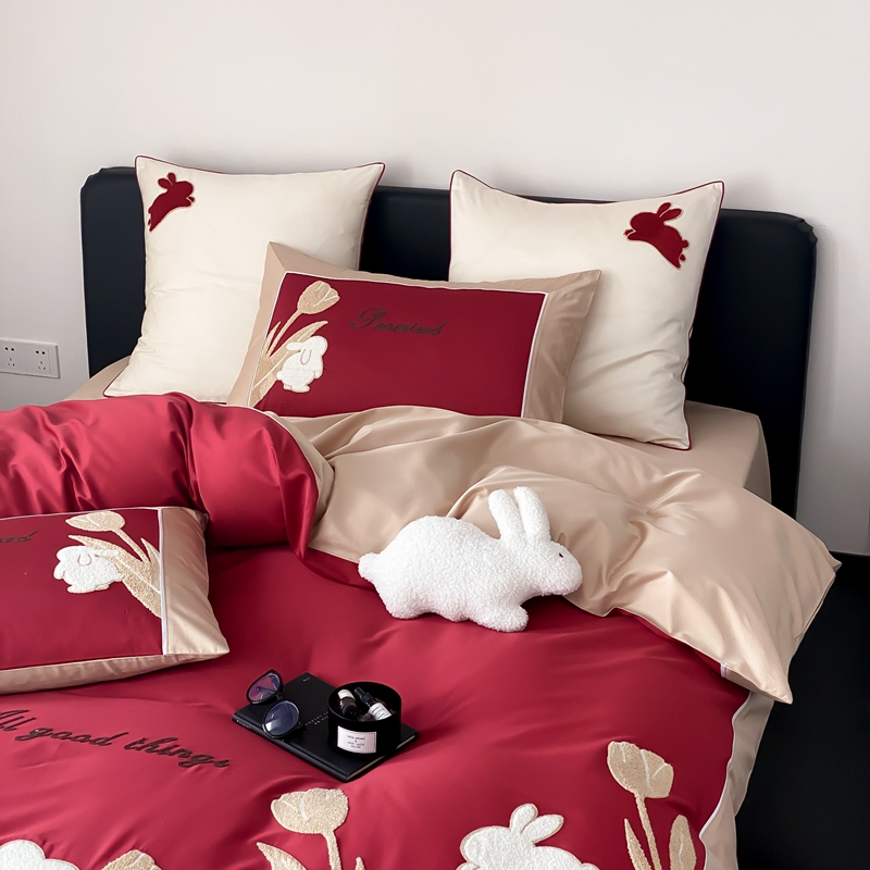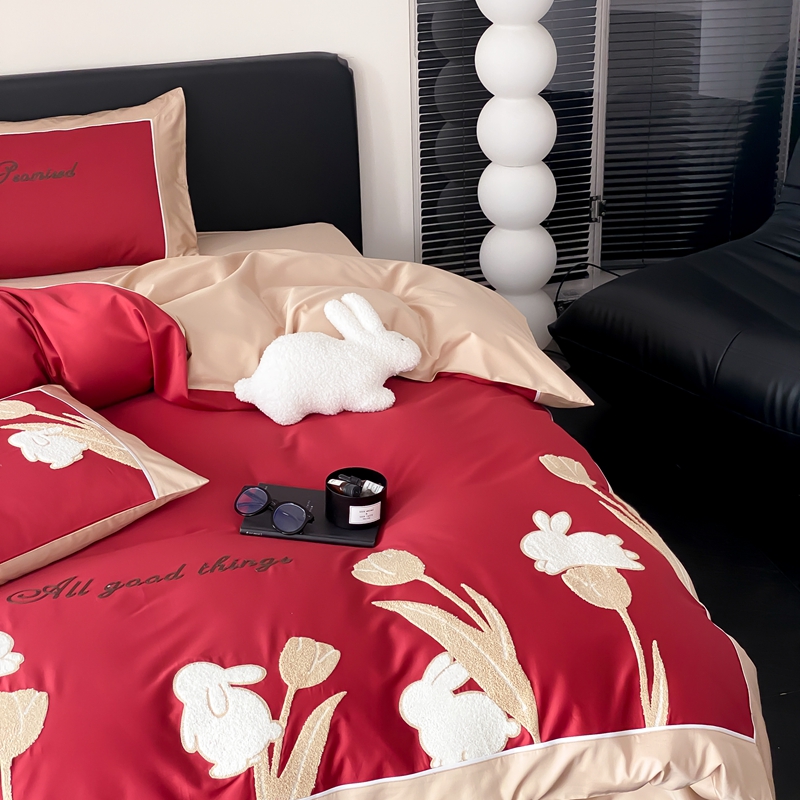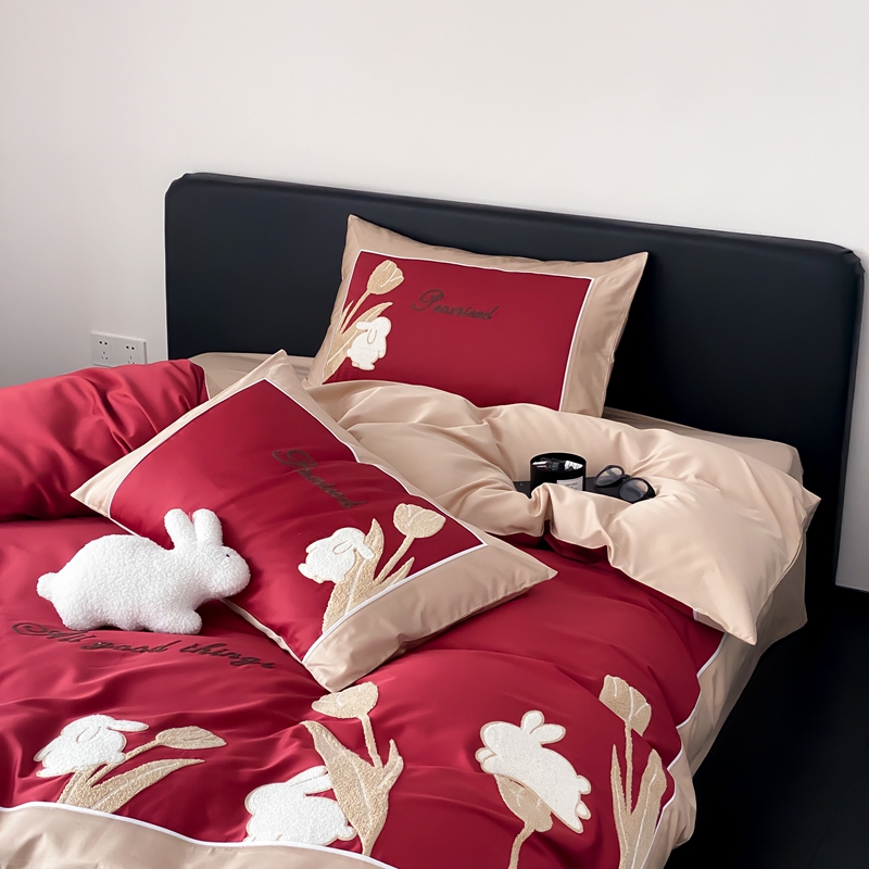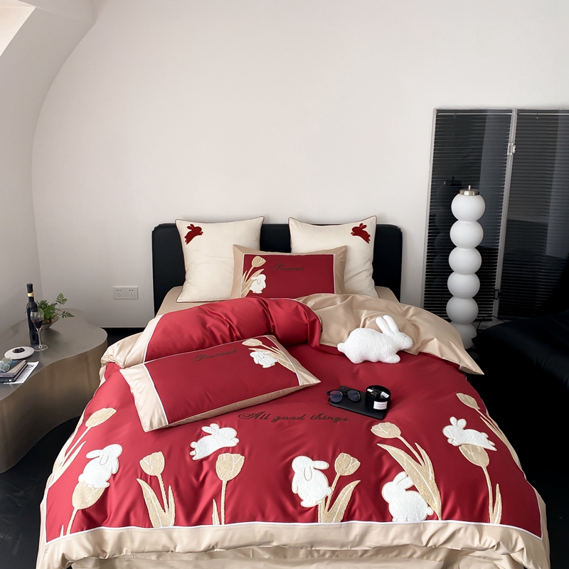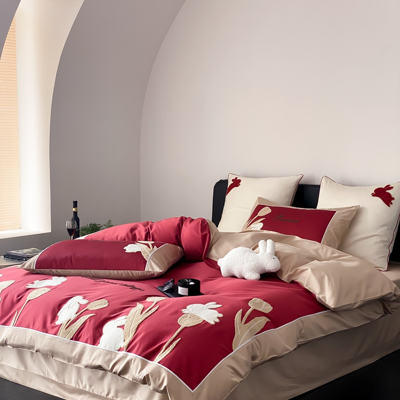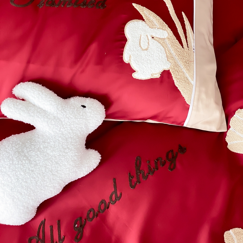 MIU缪家居 2023新款100支全棉四件套-幸运兔 红