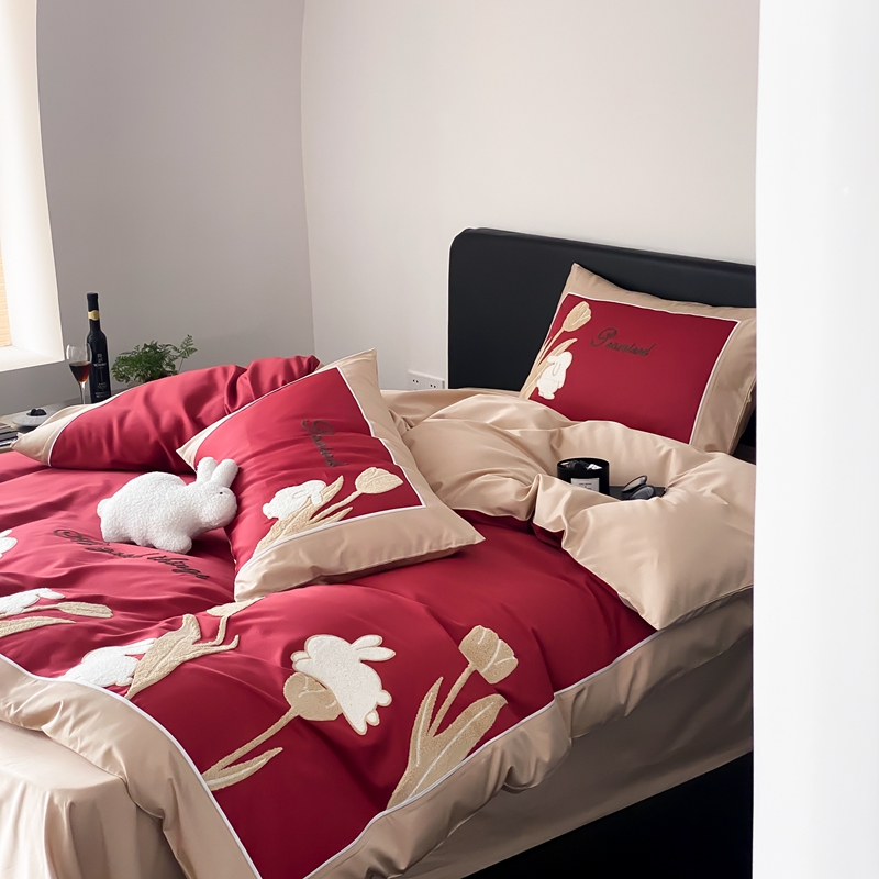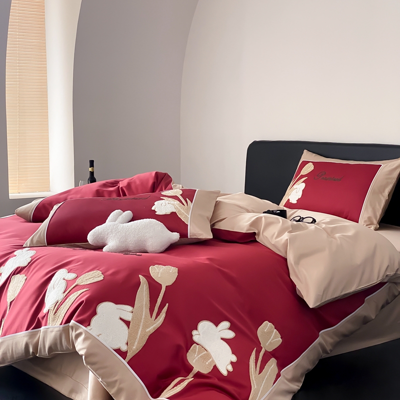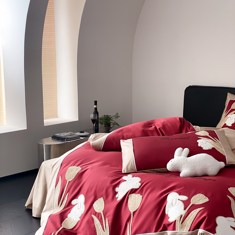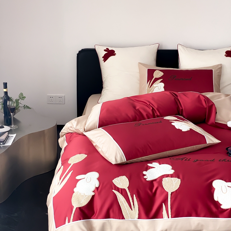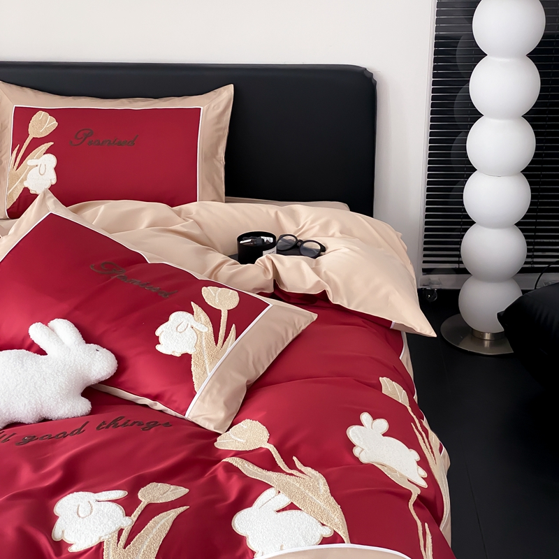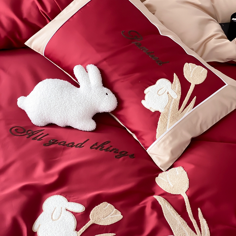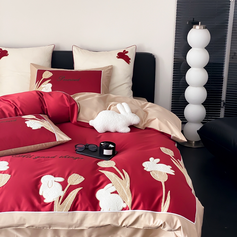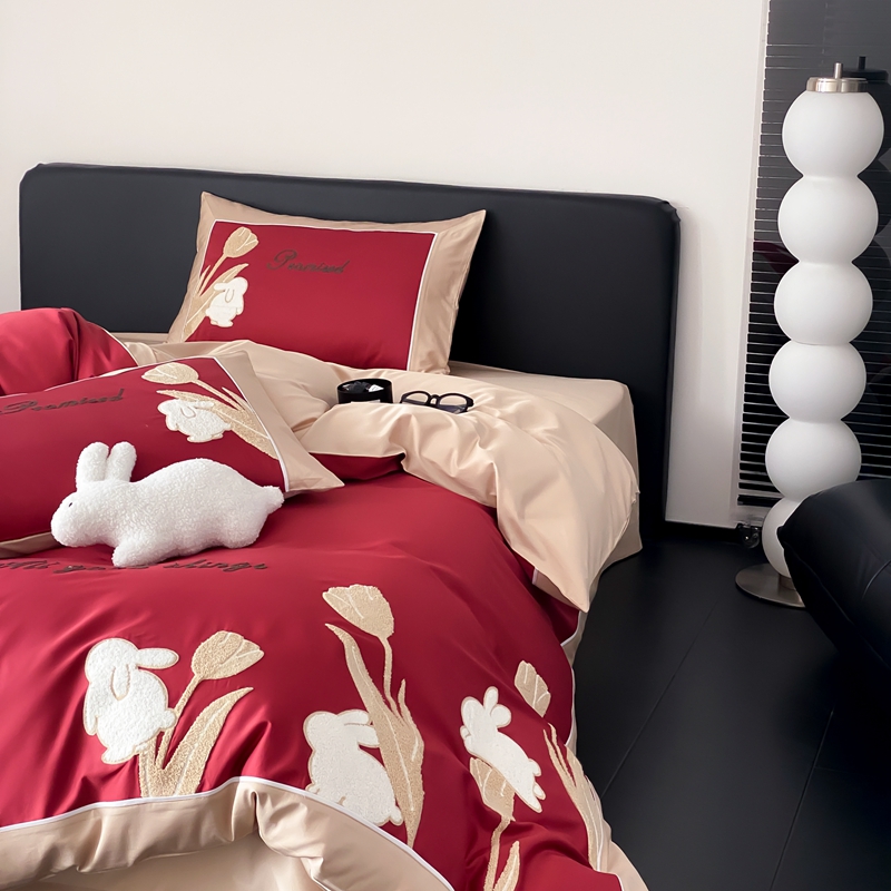 MIU缪家居 2023新款100支全棉四件套-幸运兔 红